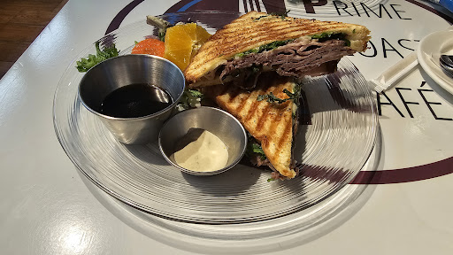 We ordered the prime rib panini set; the beef was perfect, and the salad was fresh and delicious. The set includes a drink + mini dessert (we chose crème brûlée, and they gave us an extra!). They even split the meal for easy sharing and offered candied orange peels. Regarding price: I can see how it can be considered expensive but it is absolutely worth the price.