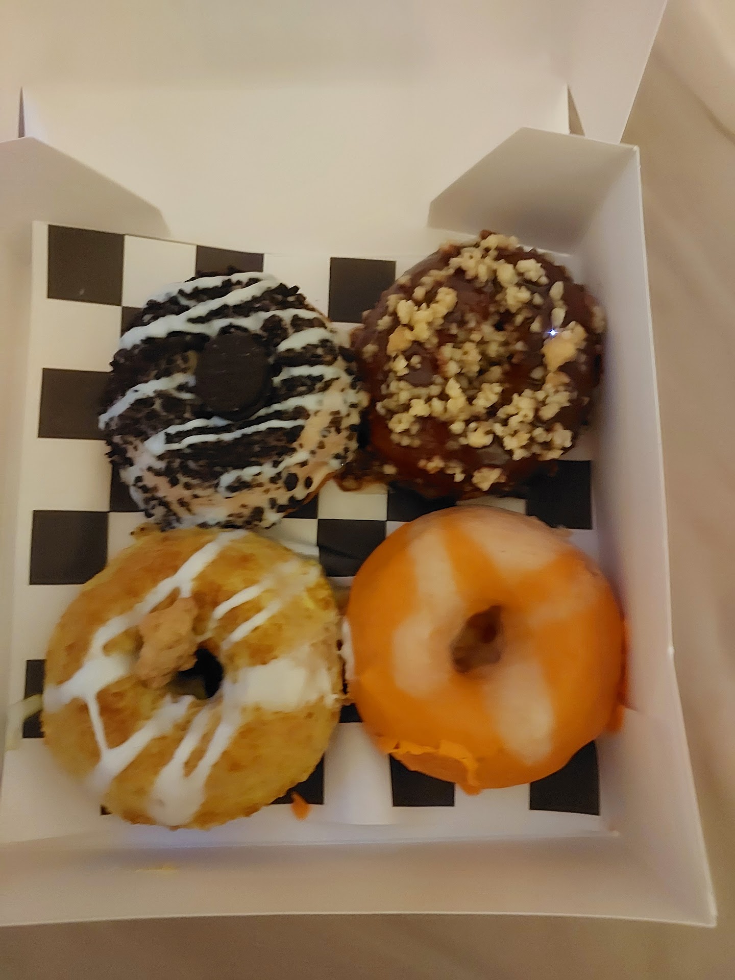 Found this absolutely awesome place when we happened to be on this side of island. We live Mililani. Granddaughter wanted doughnuts after we had appt with a landscaping business nearby. Looked up doughnuts on Google and saw was nearby, plus all the awesome reviews. Had to try it. So, upon entering..was greeted by very nice "owner"?? working there. Since first time there, he explained how to order. Place was super cute and very clean..that's a must for me. We ordered 6 different types..made to order right in front of us. They have models with names that you can pick or you can create your own toppings. The plain doughnut is what you start with and it's amazing by itself! The box they come in is just too cute as well!! My first thought, OMG...they look fab!! Next thought, hmmm will probably be so sweet BUT ...NOT!! These were the most delicious cake-like doughnuts EVER! So soft, dense and moist!! Could've chosen without glaze BUT the glaze???...NOT overly sweet at all ! I'm diabetic and tested my glucose after...was in normal range!! I can't explain it. Hubby said "these are the most incredibly awesome looking and most delicious doughnuts I've ever eaten!!" Granddaughter was speechless...all we heard was lips smacking and she ate the whole thing which she normally doesn't do. Grandson got to eat 1 and wanted us to drive all the way back for more! The glazes were perfectly dipped and stayed on doughnut (we saved 1 for next day). Price was very reasonable. This is definitely our to-go doughnut fave and will be traveling that way...