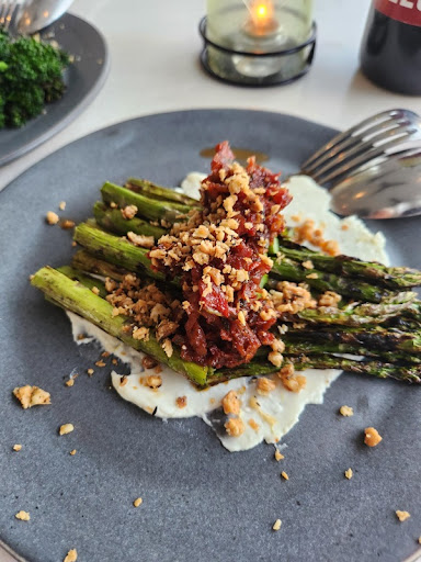 Our entrees were the 12oz Snake River Farms American Wagyu Ribeye ($81) and the Australian Costolette di Agnello ($78), both prepared medium rare The ribeye came sliced with grilled broccolini and two sauces; one for the steak, the other for the vegetable. It looked a lot larger than 12oz. The Costolette was a hearty rack of lamb, with crispy eggplant and kale, brussels sprouts, and a caponata chutney. We had Broccoli alla Griglia ($16) and Asparagi Grigliati ($16) for our sides. The vegetables came well-seasoned and were delicious. In hindsight, we didn’t need the broccolini as it was featured with the ribeye.
