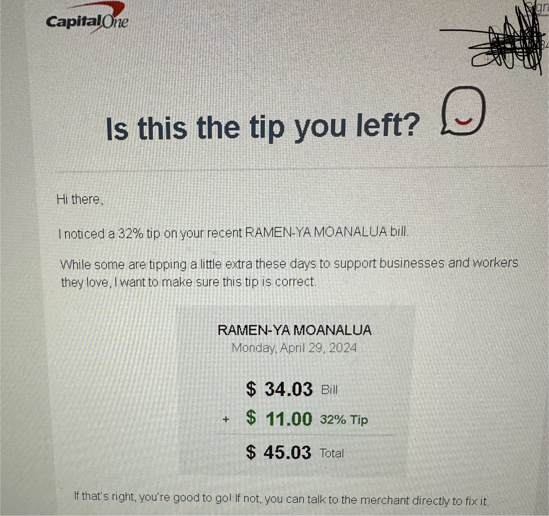 If you're planning to indulge in some delicious Ramen, make sure to keep an eye on your bank statement afterwards. My husband and I recently dined at a Ramen restaurant, where I left a generous $3 tip “ considering my experience.” To my dismay, I later discovered that someone had added an $11 tip without my consent! 😠