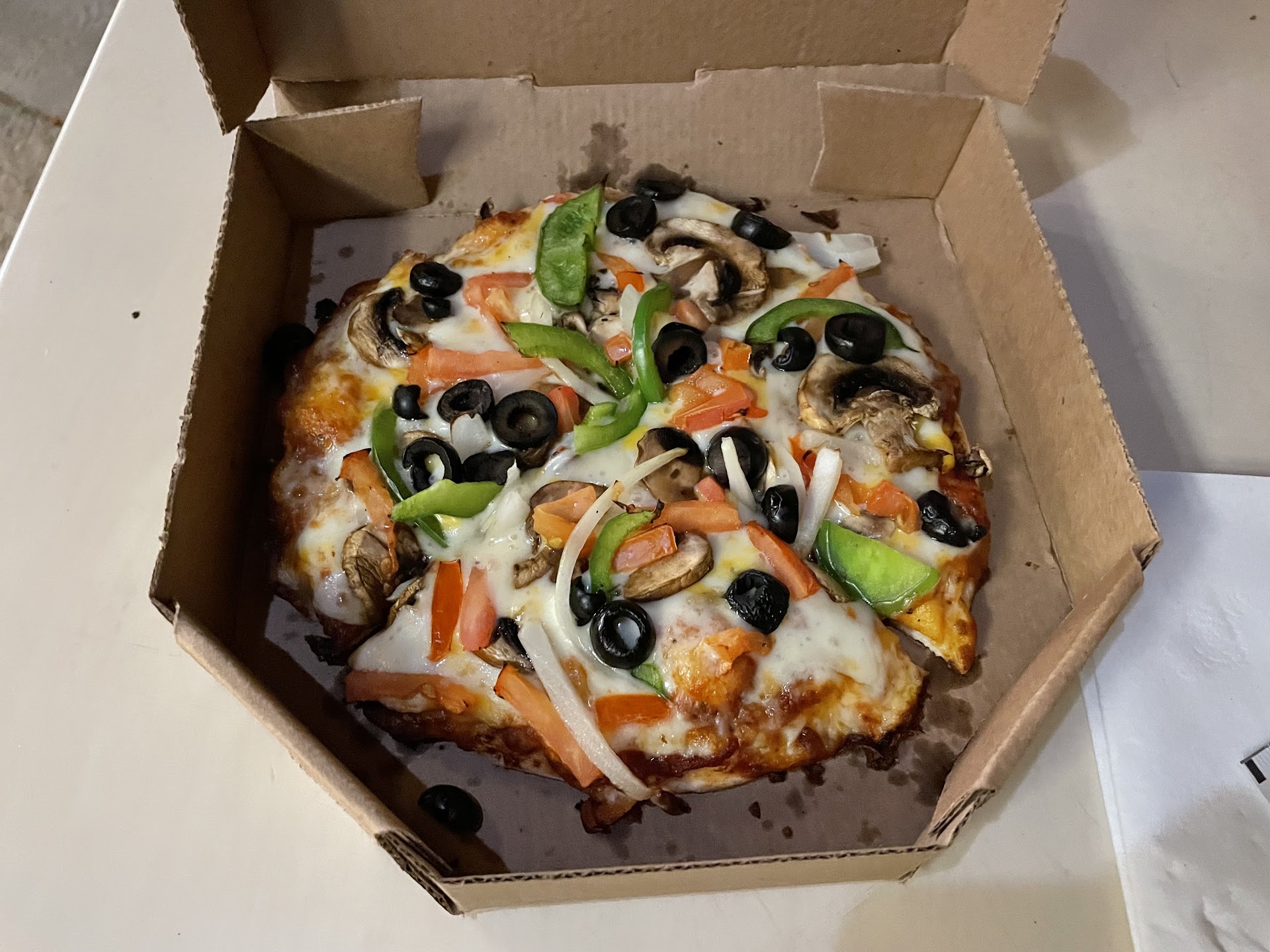 Our pizza, was hot and crunchy, but I felt the garlic was overpowering. You tasted more of the garlic and not the chicken.