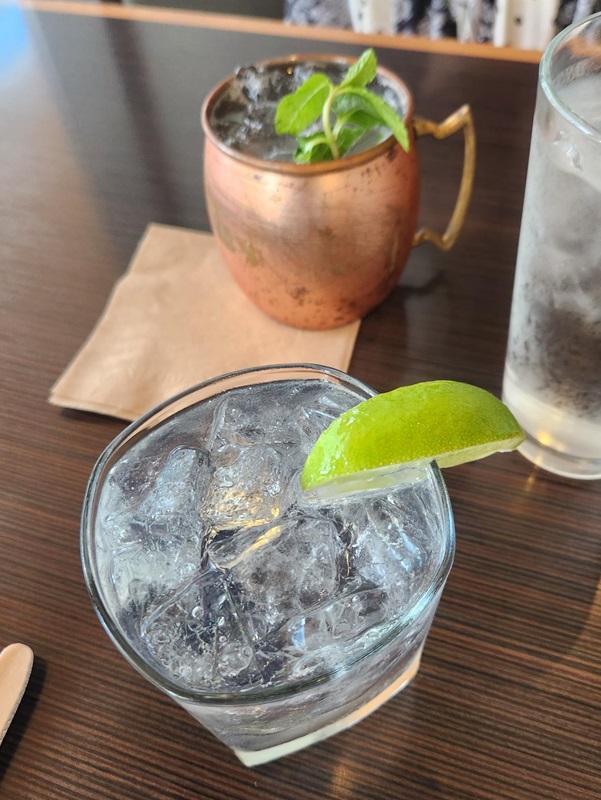 We started with a Moscow Mule and a Hendricks gin & tonic while we perused the menu. We ended up ordering the Kung Pao Brussels Sprouts, Heirloom Tomatoes & Burrata and the Chicken Lemon Pesto Gnocchi.