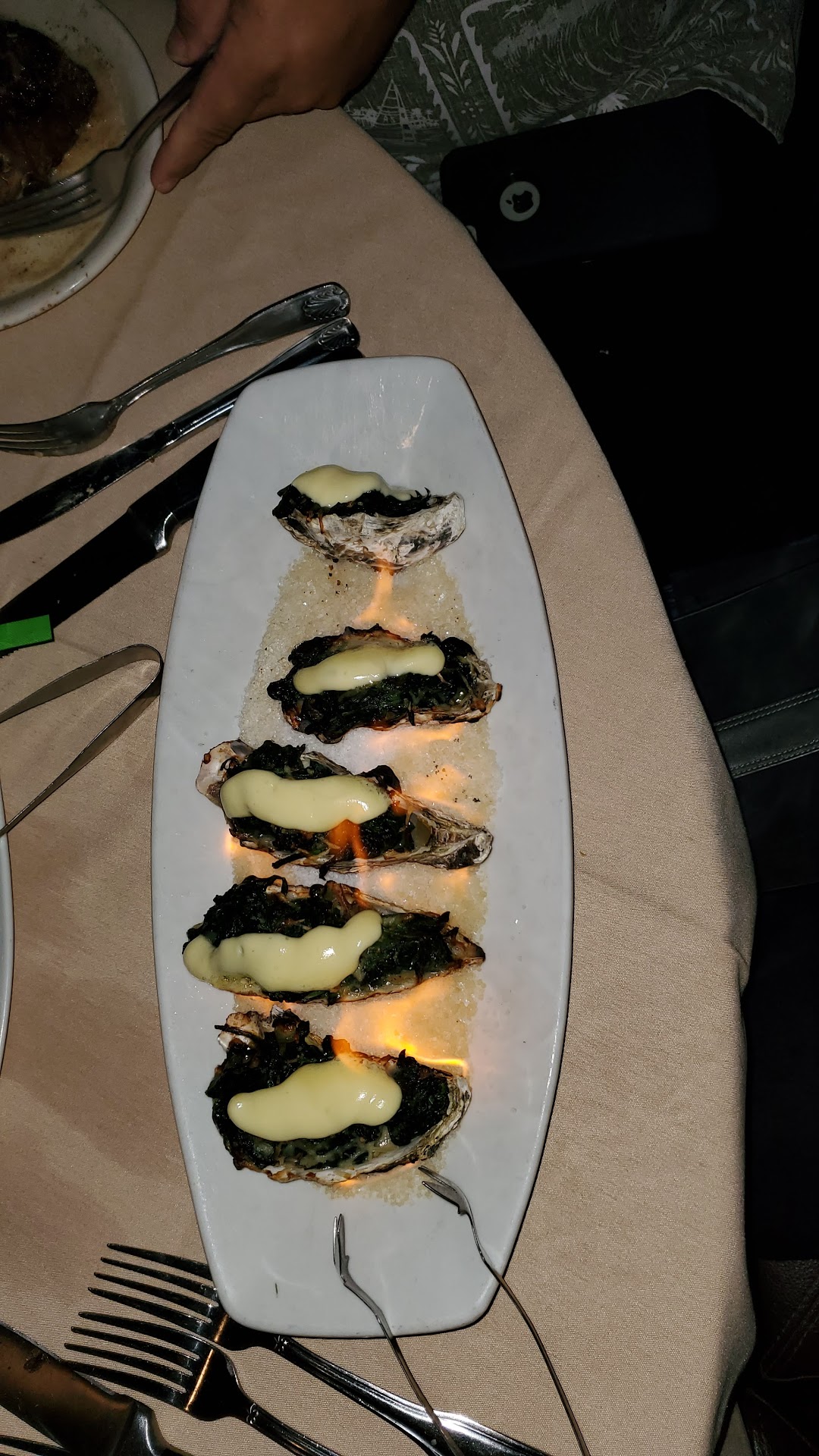 The food is always delicious. I've enjoyed many different creations, sometimes I just wanted the lobster mac n cheese, and stuffed mushrooms for dinner...and of course the best creme brulee for dessert. I have never been disappointed. My favorites are the ribeye and the filet --depending on my mood, the potatoes au gratin, and the creamed spinach. They do it well, every time. Besides, I ain't making creamed spinach at home! And I tried stuffing my own mushrooms. Not happening.