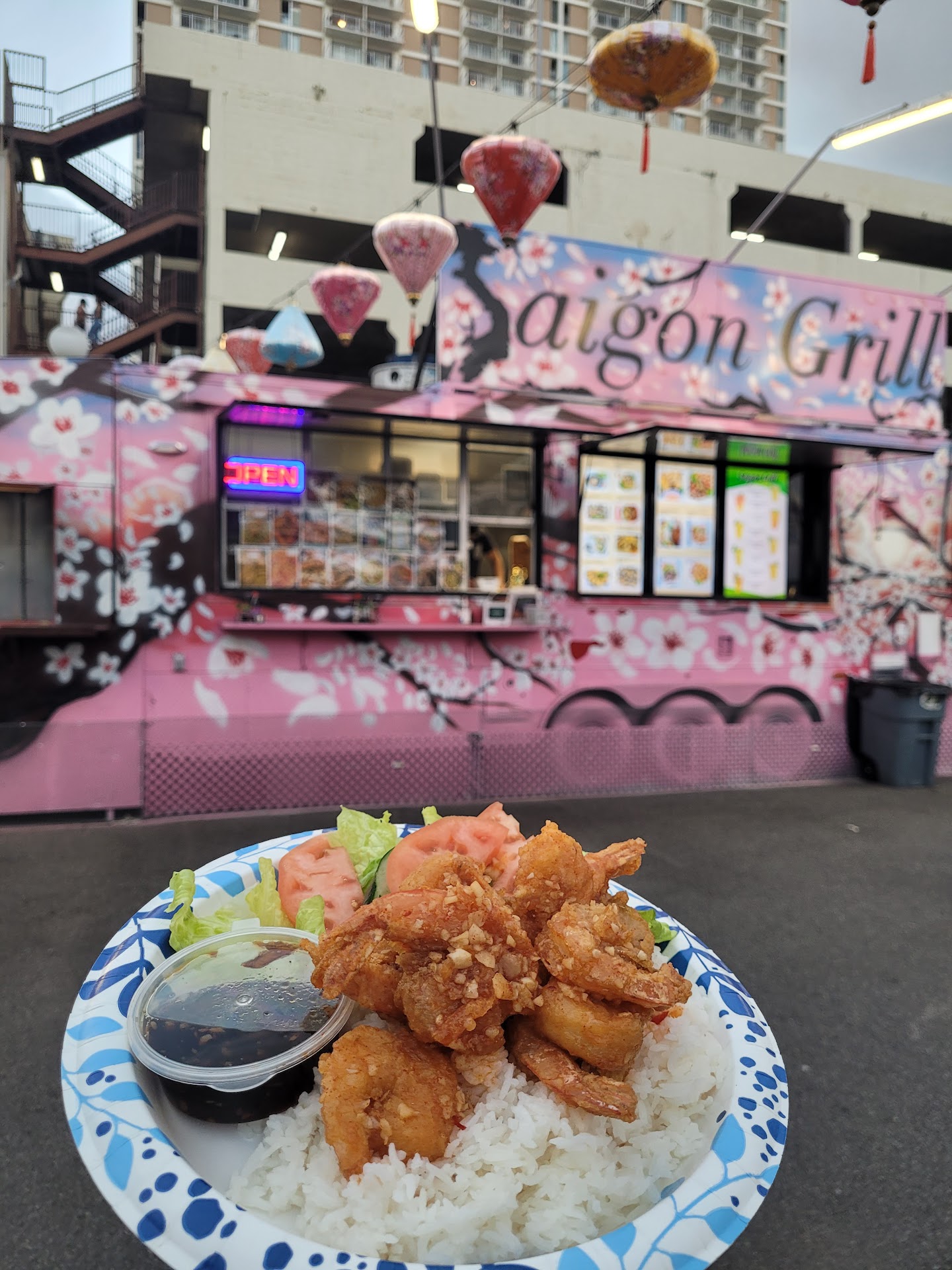 Despite these initial disappointments, we decided to give them a chance considering the late hour. The gentleman behind the counter recommended their signature "garlic shrimp plate" with a side of rice, which came at a staggering price of $40. Eagerly, we made the purchase only to discover that the dish was unbearably spicy and disappointingly burnt, with various other flaws.