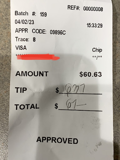 Update: I'm still extremely bothered and angry. Calculating again, how the lady server said "Leave at least 10%" Regrettably not calculating and my boyfriend adding cash more in the tip. my original tip was 10% anyway! SOMEONE REPORT THIS RESTAURANT TO THE CONSUMER PROTECTION OFFICE. THEIR RIDICULOUSLY RUDE, SHAMING AND BULLYING...
