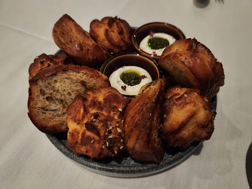 Our culinary journey commenced with the seasonal menu. To kick off, we were treated to a selection of light and sophisticated amuse bouchés - a comforting mushroom brioche with goat cheese & pesto, a delicate gougère, flavorful oysters topped with an icy vinaigrette sorbet, and an adventurous nibble of fried frog legs. Each morsel was a testament to the artistry and flavor-profile balance La Vie exemplifies.