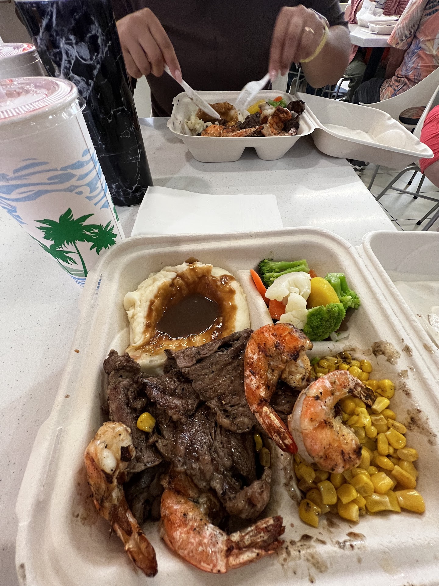 I gave it 3 star's. Because of the service was terrible, they rang in our order wrong and then gave us the wrong order twice,it normally comes with mashed potatoes and gravy, with corn, and mix vegetables.. we just ordered ours with all veggies, and they could not seem to get that right and kept trying to give it to us with the mashed potatoes and gravy and corn... But our food was good seasoning well and cook right scallops and shrimp for $16.50 were else do they do that at. We will try again hopefully they will have a new crew working next time. I hope this helps you out and good luck. Oh yeah they do not let you eat inside unless you are vaccinated, so you will have to take your food to outdoor...