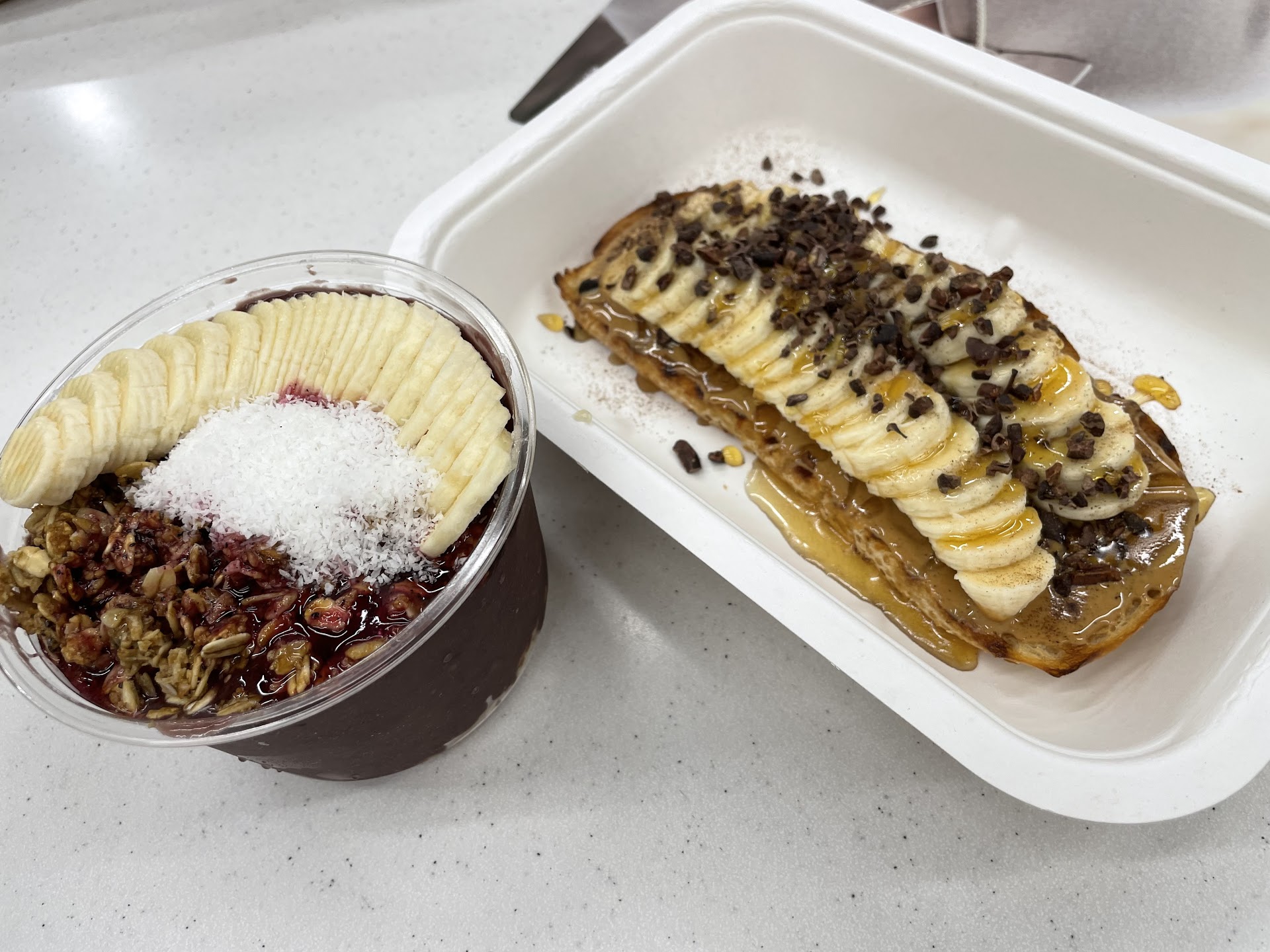 The texture of the açaí bowl was completely off. It was like it had been made earlier, melted, refrozen, and then served. You know that icy, gritty texture you get when something melts and is refrozen? That’s exactly what it was like. I had high hopes for a smooth, creamy bowl, but instead, it was more like a slushy mess.