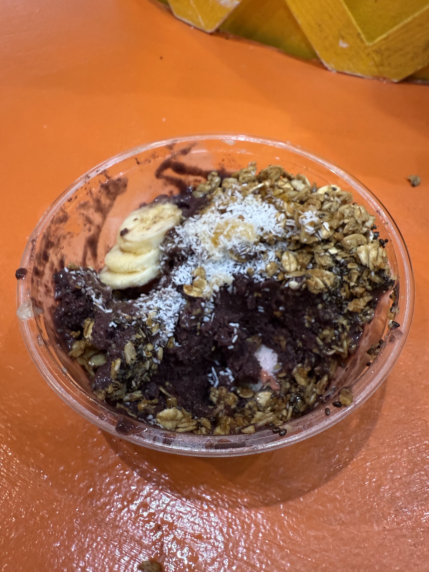The texture of the aƧaĆ bowl was completely off. It was like it had been made earlier, melted, refrozen, and then served. You know that icy, gritty texture you get when something melts and is refrozen? Thatās exactly what it was like. I had high hopes for a smooth, creamy bowl, but instead, it was more like a slushy mess.