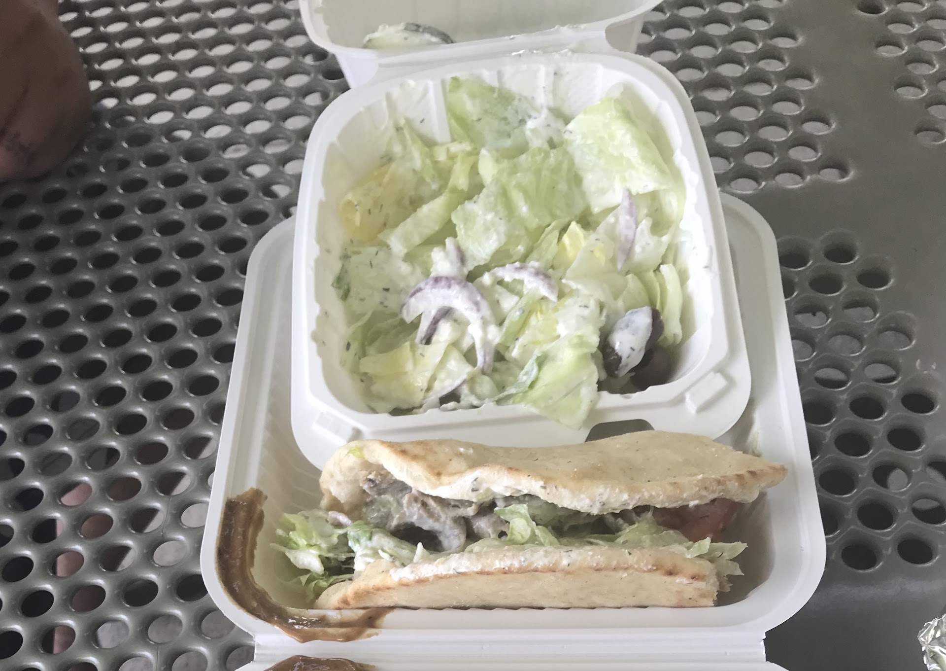 Read moreI've eaten here before and it was okay, food took awhile with one person working but still okay. I ate here again recently and it was terrible. I got sick because the lamb was doused in salt. I should've stopped eating but I didn't want to waste food.. should've listened to my body and thrown it away instead. I also ordered a side of hummus and couldn't even eat it, it was room temp which meant it wasn't properly stored, it was most likely past it's due date. Not worth the $1.75 especially as a small side. Never eating here again. This place should be inspected for proper food storage, it made me really sick and wouldn't wish that pain on...