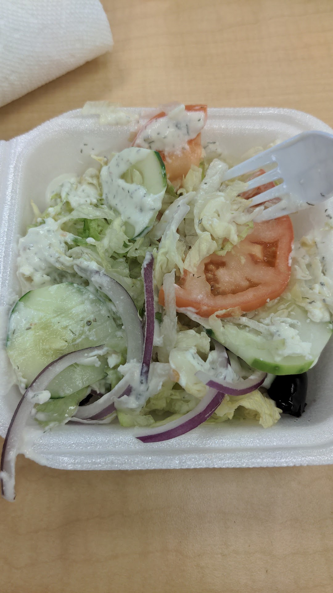 Read moreMistake 1. They use tzatziki as salad dressing. #2. The tzatziki was way too thin and not enough for the salad, and none was on the sandwich. #3. They used a cold pita. #4. The pita size was too small (not your stand 11" pita for gyros). #5. Way too much lettuce, treating more like a street taco than a gyro. #6. They ended up wrapping (the foil) it more like a burrito than your traditional gyro wrap. The Pros? They used the right olives in the salad. I get that as a Greek, you can't expect much from a greek street vendor style setting on an island in the middle of the Pacific, but come on... not...