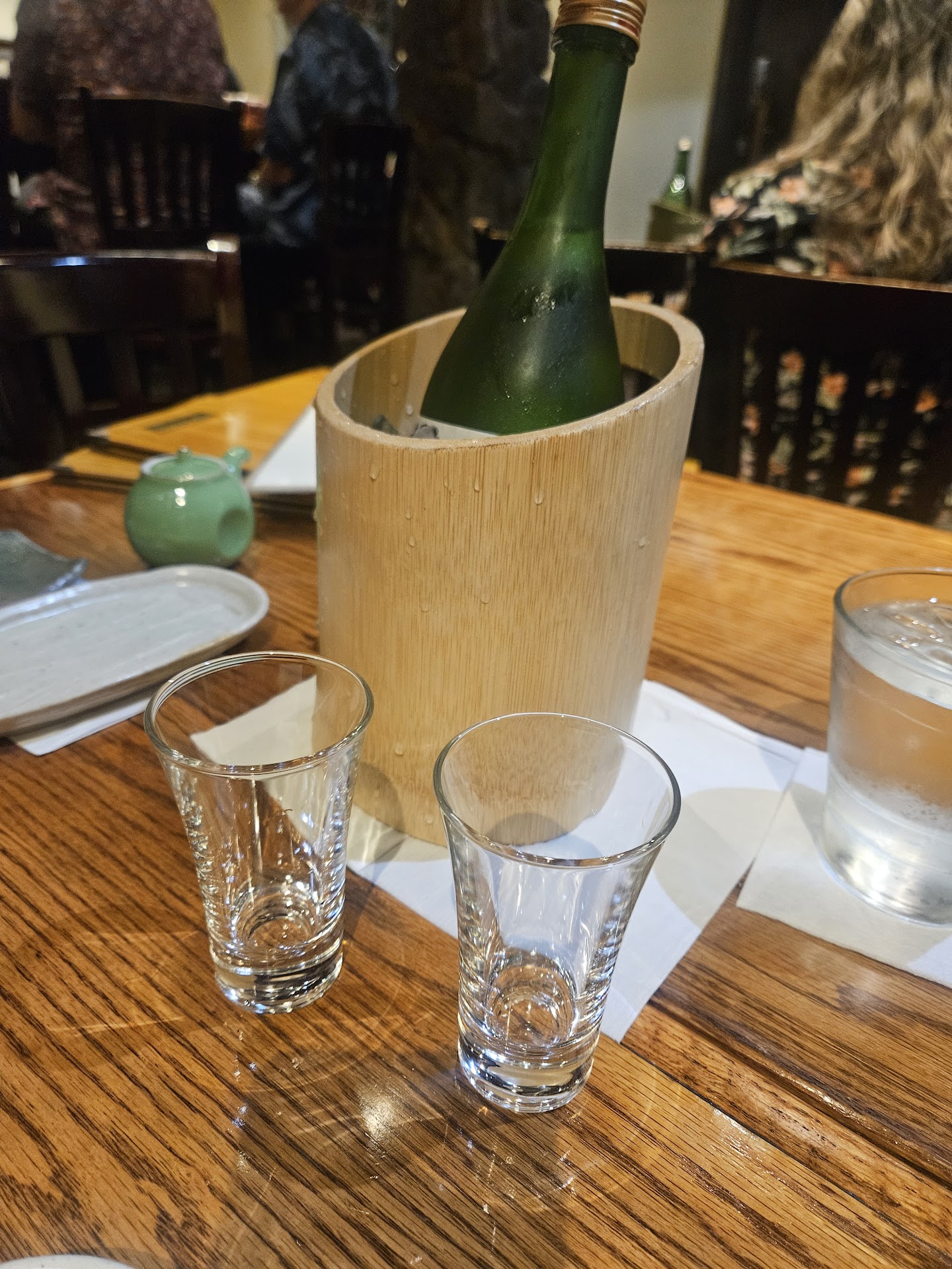For all the food plus a bottle of sake, bill was...