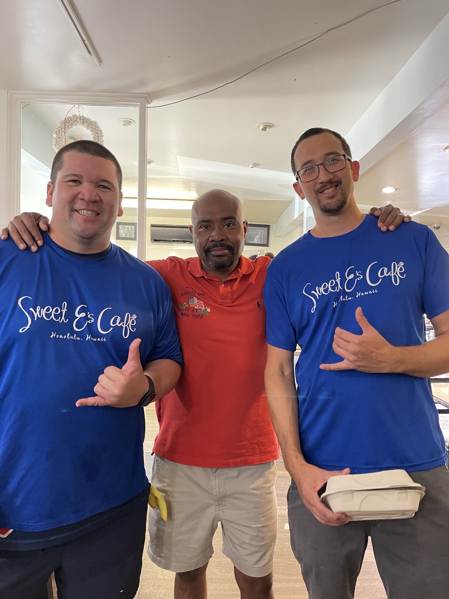 While vacationing in Honolulu, we on the recommendation of my wife who's been here before decided to check out Sweet E's and the food, service and hospitality kept us coming back for more. When you see Sweet E's from the outside, you don't think much of the restaurant but when you come in then you see that they are all about family. On the many occasions that we were here from the first time to the last, we were treated like family.