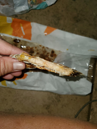 Burrito came out fine. Guacamole was added to my quesadilla (which normally I wouldn't complain) but it took away from how I wanted it... I wanted it plain. You could tell they added the guacamole because they put way too much of the sauce that I didn't want. First piece made me sick so I tossed it. Didn't bother walking back in because of how long it took to get my original order. No receipt because I opted to not have...
