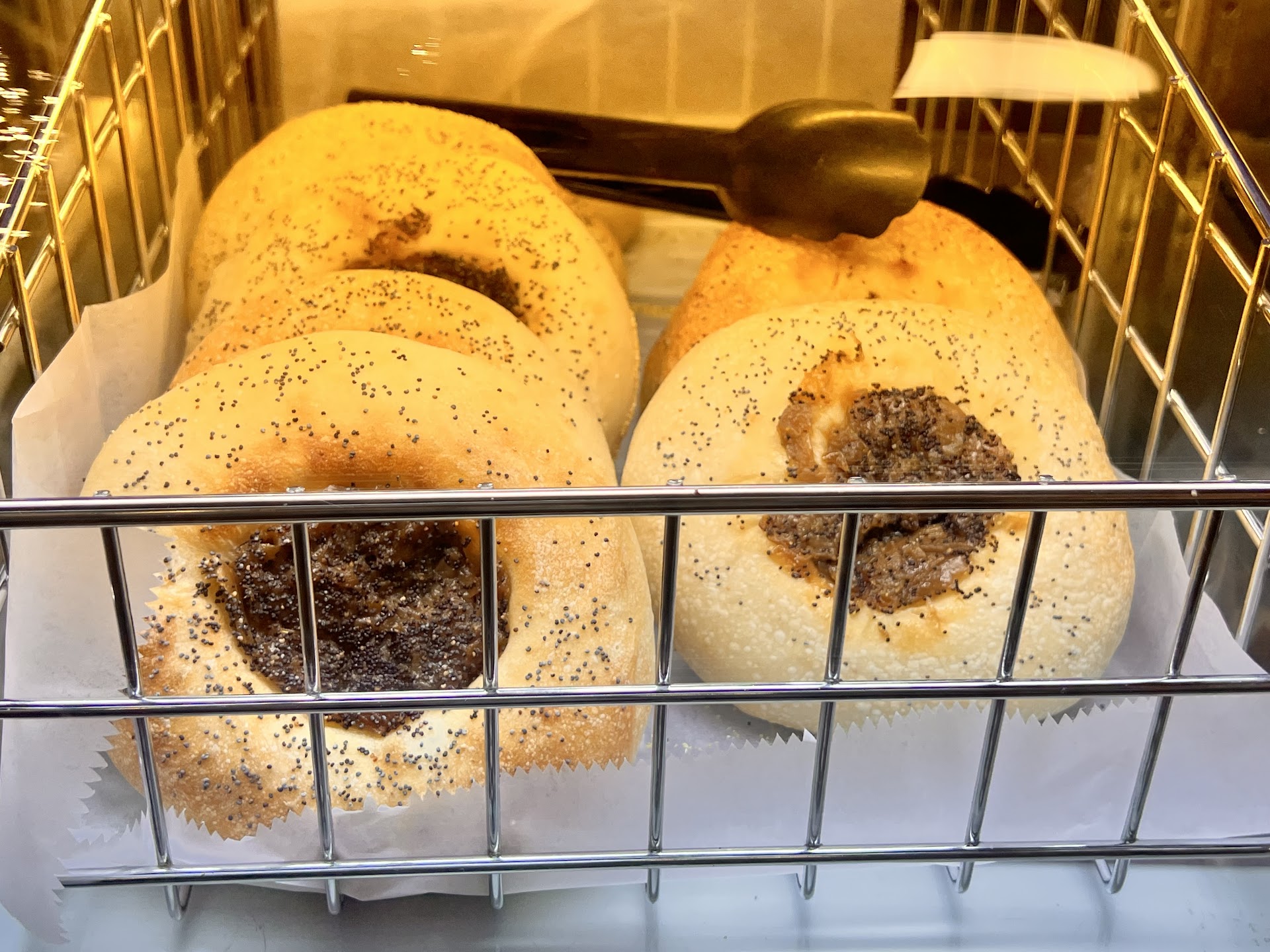 The bagels do in fact have a crispy exterior with a nice chewy center, but not to the point of being tough. Though it definitely helps to get them earlier in the morning!