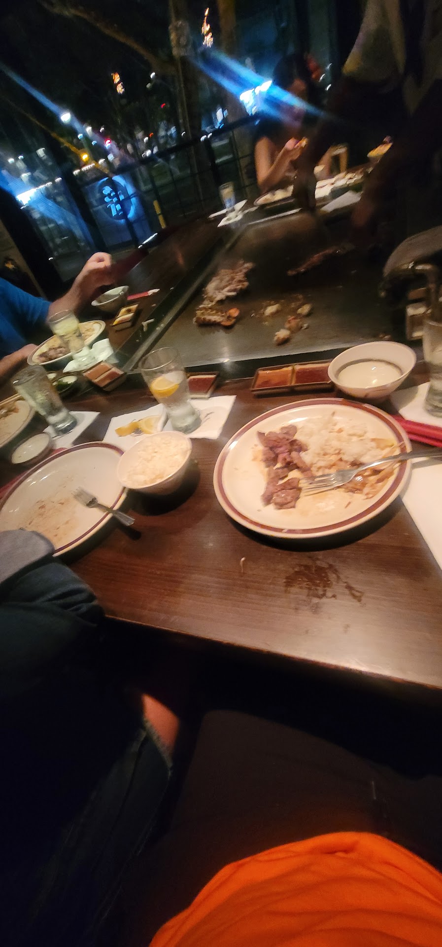 Read moreThis was my first visit to this restaurant and it was to celebrate my 29th birthday. we had a party of 8 for 8pm but when we arrived we were still missing 2 people and were made aware that we couldn't be seated till everyone arrived, (totally our parties fault) so we waited for our friends and then they arrived totally late, at 830 PM and they sat us right away with no waiting. AMAZING!! So as soon as we sat down our drink orders got taken and then someone from management came to welcome us and gave us each a reusable back and some side orders of fried rice, also to wish me a happy birthday. i couldn't believe how personable they were and how much they seemed to care about their customers. then our cook came and he was so good. he was friendly and nice. He had many tricks and treats in his show and the food....OMG i cant even put into words how amazing it was. i ordered the steak and shrimp and my wife ordered the seafood combo and there were a few other ordered of shell fish and we had one person in our party allergic to shell fish and our cook totally accommodated her and made sure to cook her food alone and that made her feel so safe eating there. we never had to wonder where our server was or if we were going to get more drinks, always was there to ask if we needed more refills and anything else. the food was so good and the show amazing that by the time it was time for dessert we realized it was 2 hours later and it didn't even feel like it, we were having so much fun! they then brought out ice cream for everyone and a very cute plate with a cake one it for me and had everyone sing for me....totally funny and embarrassing lol. then they cut it up for the whole party, so yummy too....we got some boxes to take left overs and then before we even got a chance to leave the manager was back again to make sure we had a good time and everything was okay and good. i will totally be back again and be telling everyone about how good of...