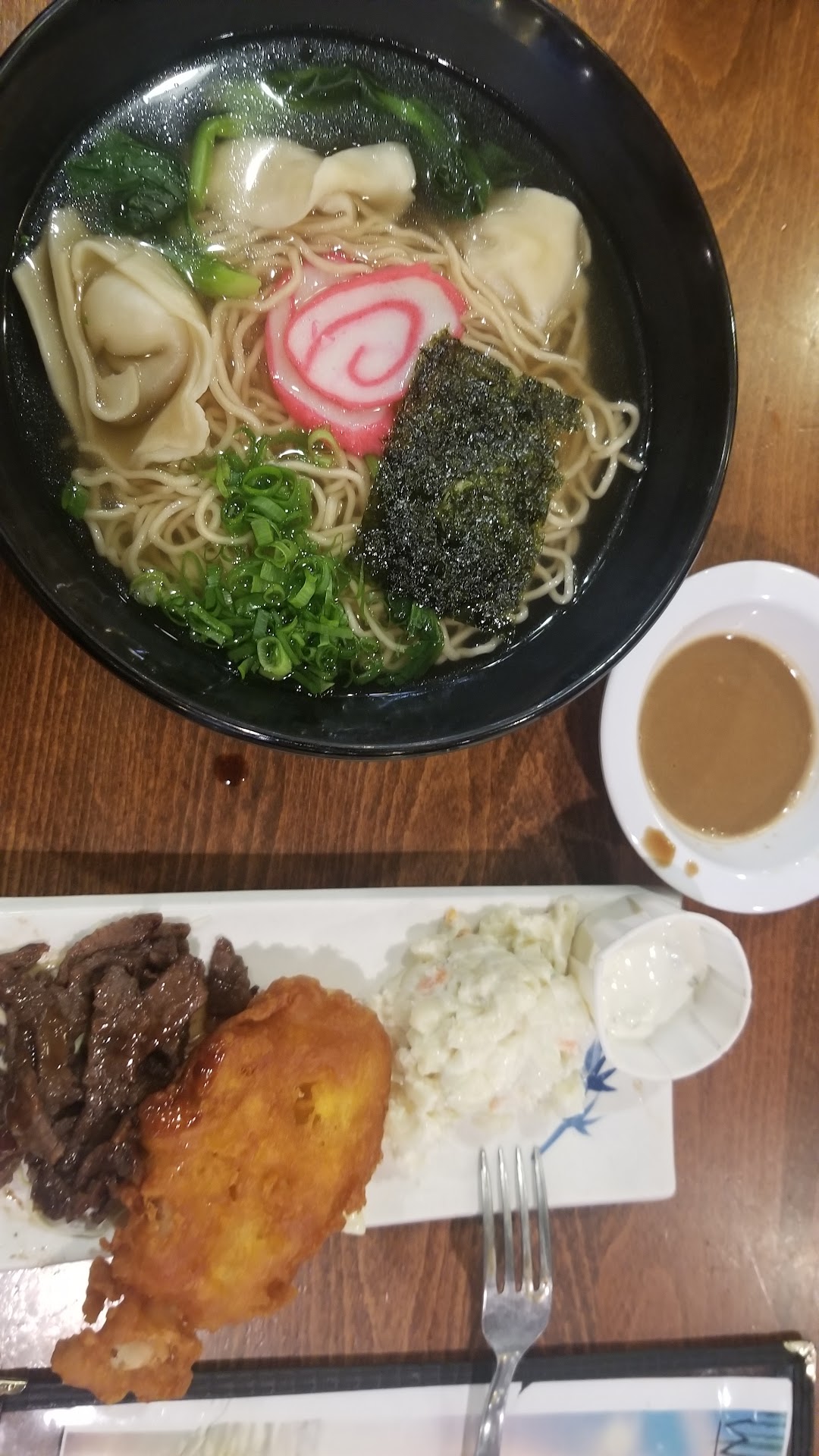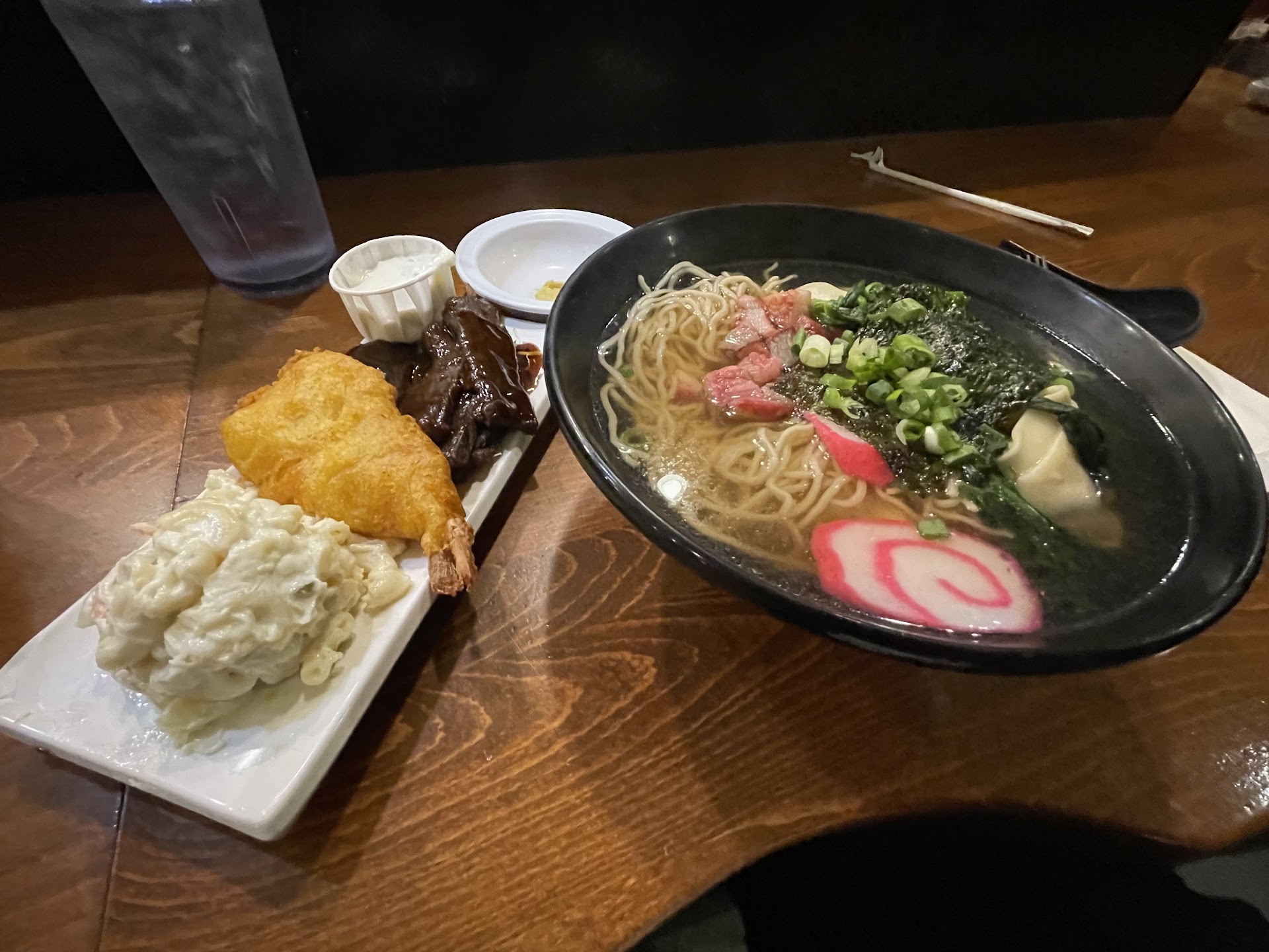 Ā Ā Ā Read moreThis is OLD SCHOOL DINER VIBES ALL THE WAY!!! I was desiring/Ono for Saimin so came to Tanaka Saimin by suggestion. Got here and was tempted by the Prime Rib Special and the Ham shank special. I saw this order come up next to me and those folks look like they were getting Tanakaās Deluxe treatment. However I ordered the Tanaka Wun Tun Special which is a huge Saimin noodle bowl with 6 tender pork Wuntun which also comes with a side of Teri beef strips, a giant shrimp tempura and you choice of mac salad or toss green salad. I chose to be healthy by getting the mac salad. Let me say my Wuntun Saimin worth the choice over prime rib and half the price. The broth was clean and made me have the best āNO TO RAMENā vibes. Plus all the waitresses are local so pidgin English was the 1st language and I felt at home. The wait staff also gave me their professional recommendations, when I told the waitress I was having a hard time choosing between the Mac salad and toss greens her recommendation was clear and direct, āBrah, no Act. No bother with the toss salad you goin regret it. Just get the Mac salad.ā So under the trance of her suggestion I just agreed and ultimately I have no food regret. One of my favorites tonight was the Teri beef and that giant tempura shrimp, especially the shrimp gives me Local Okazuya taste but memories. Both couldāve been part of a bento. JUST SAYINā⦠Iāll be here next Saturday for...