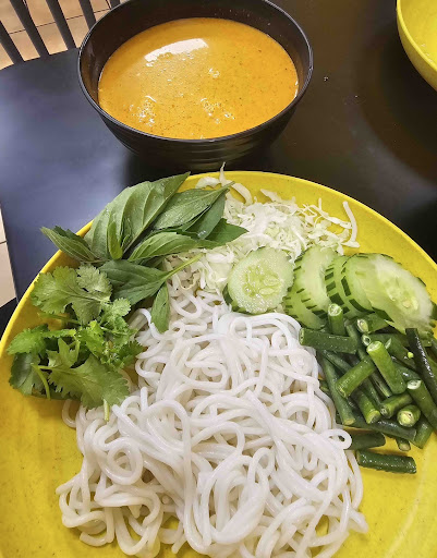 I had the most amazing experience at this Thai Craft Curry! I tried the Thai street food dish for the first timeāthe Thai fresh thin rice noodles with fish curryāand wow, it was incredible! The curry was perfectly topped on the soft, white noodles (kind of like a Thai version of spaghetti), and the dish was so aromatic and flavorful. Plus, they gave us fresh, crispy side vegetables grown right on the island. It was so fresh and a perfect complement to the meal.