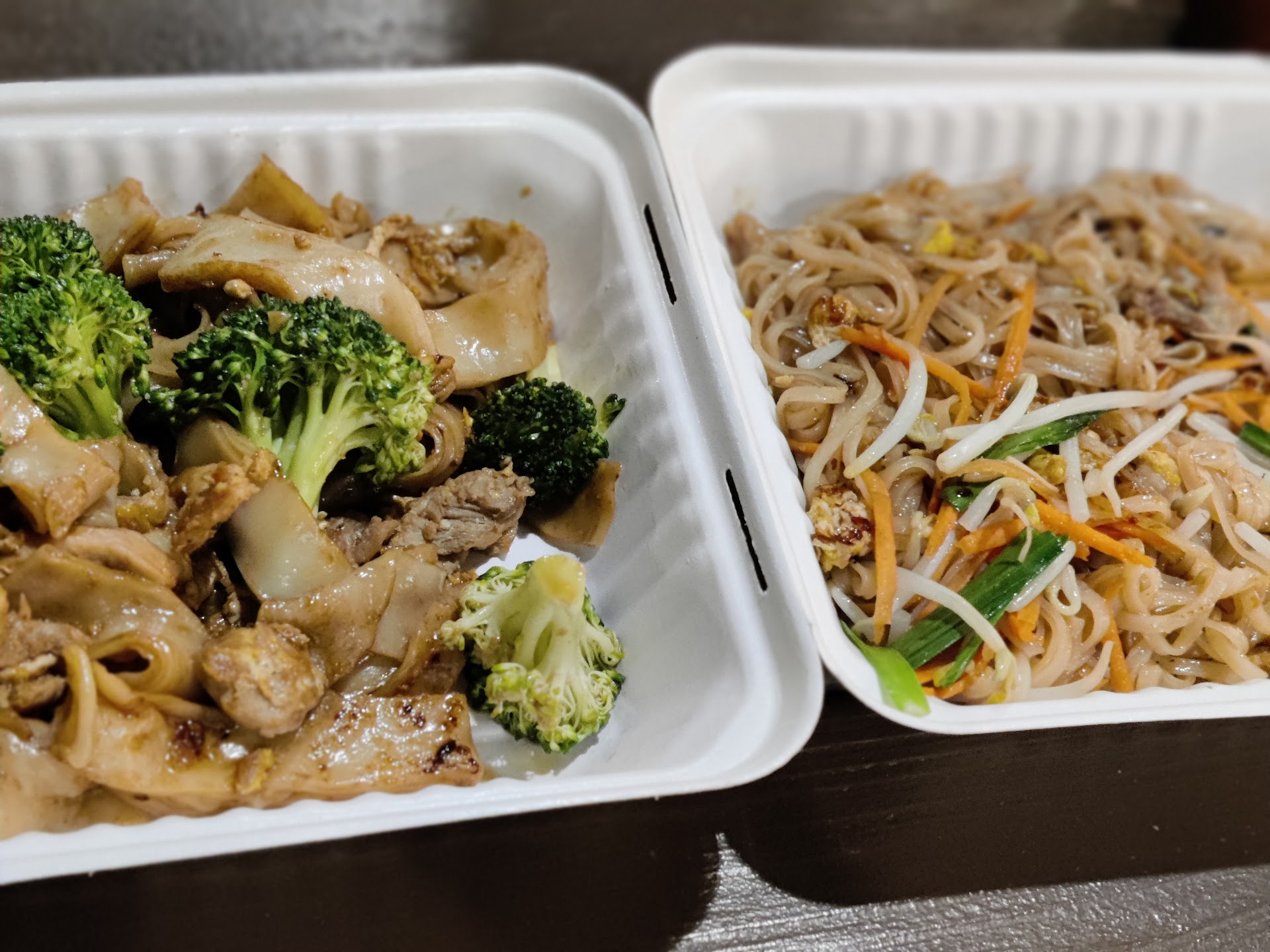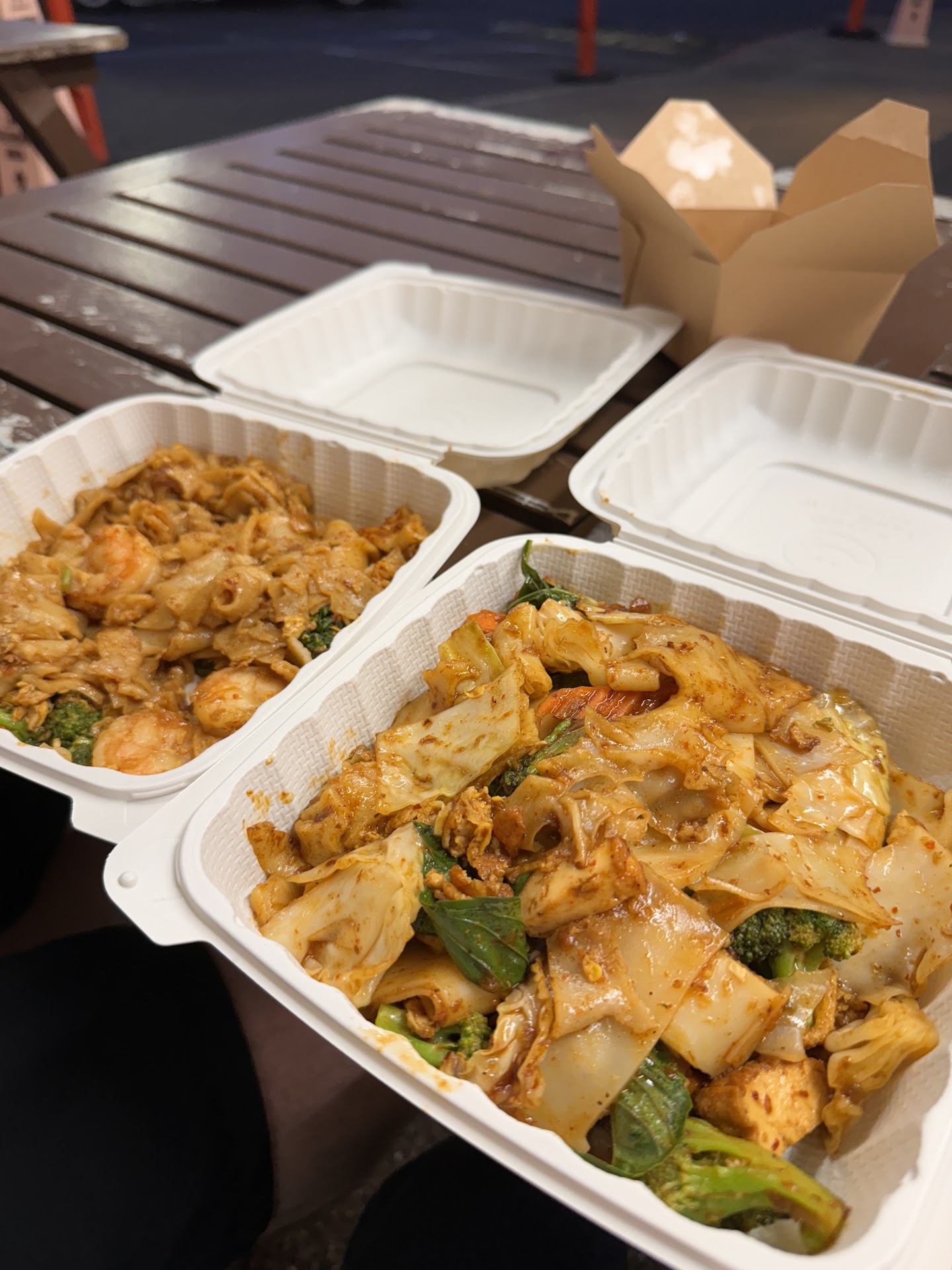 We ordered the Chicken Pad See Ew, Chicken Pad Thai, Thai Tea, and a Coke- less than $30 before tip - so the prices are reasonable. Freshness, texture, and seasoning were good and portion size was ok (see pic). I personally wouldn't have minded if there was about 30% more volume though. Great...
