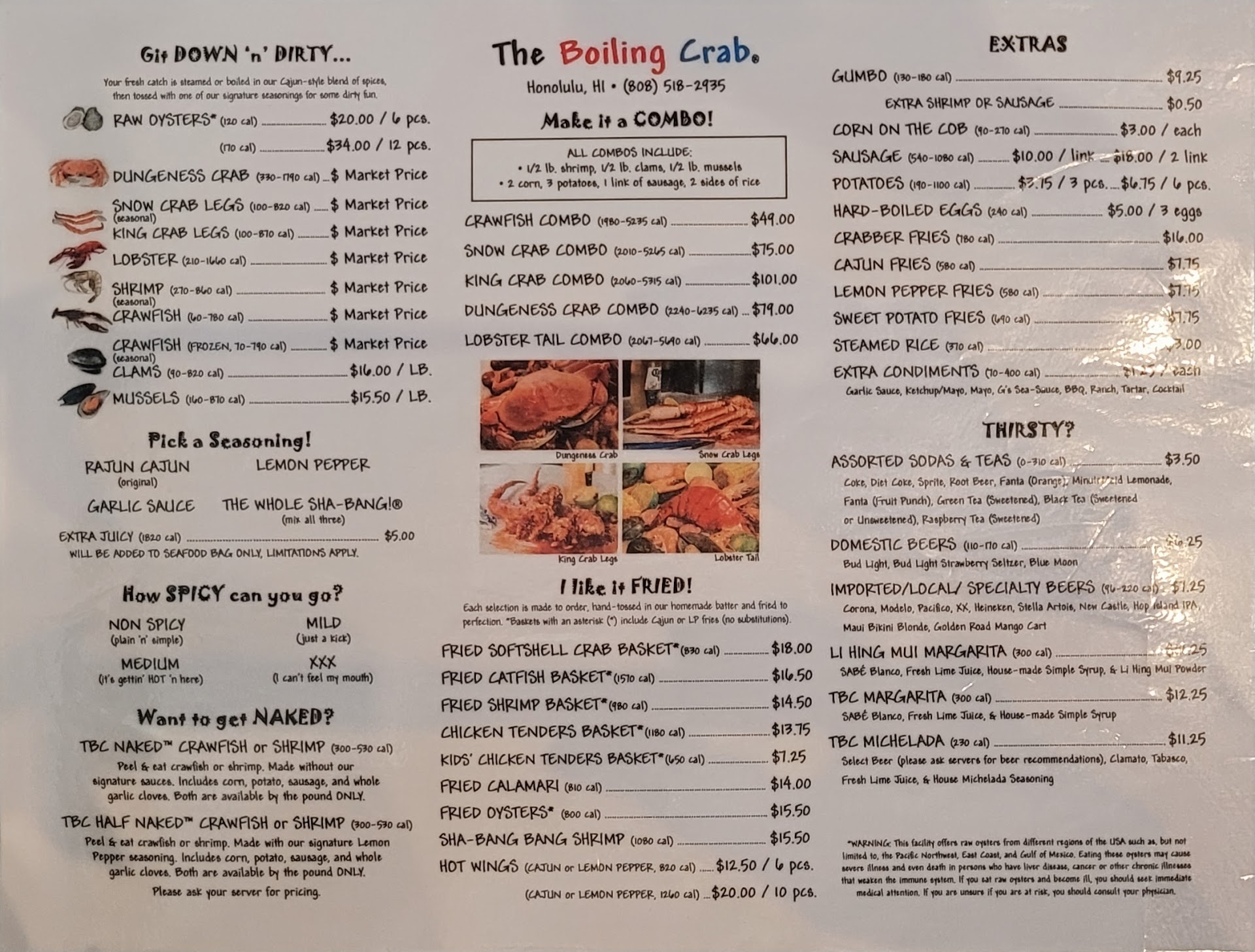 Read moreAbsolutely worse experience I have ever had in my entire life at a restraunt. I went to go eat with my younger brother while we were on vacation about a month ago. The entire time i was sitting and talking to our waiter the woman from takeout kept giving us dirty looks. The food was fine, however the portions seem small. I had asked the waiter at one point if the weight of crabs was correct. He said yes , and all was good. Now the same woman in take out rolls her eyes and sighs loudly as if it is a problem. I let it go and actually order another pound (three pds total) because we are still hungry. We also order another two sides because i wanted to bring a little back for family. While im eating i realize that it is more pragmatic if I just make it a combo instead. When the bill comes, i realize they charged much more than what a pound for the last set of crabs. Iam talking to my brother about it and letting him know i want to ask about it and also change it to combo if possible. While im calling the waiter over the woman from takeout storms over and gets in my face saying everything is correct and i shouldnt have a problem. she literally is spitting in my face while talking and pointing her finger at me. I was shocked.... i never in my life was treated like this at any restraunt ... i start to get angry because she is literally acting like she wants to fight. Instead of stooping to her level, i ask for the manager. He comes over and starts being super rude and acting like she is right... yet he was in the back room and saw nothing. I think the waitress and manager thought it was about the money.. maybe people do that here.. but coming from Palm Beach florida , we are used to overpaying. Money was never a problem which is why i still gave a great tip. Honestly i was ready to call the cops but i came to Hawaii to enjoy myself, not to let someone like that ruin my time. Do not waste your time going here. It is dangerous and bad vibes. Not kid friendly and the food is not worth the horrific service. That woman should be fired and so should the manager. They are the type to spit in your food,...