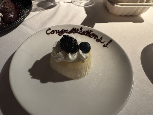 I ordered the "diver scallops". This title implies that they are harvested daily, also referred to as 'day boat scallops'. This type of scallop has a firm dry texture and tastes of fresh seawater. In all fairness to anyone who knows the difference, these are not them. Although these scallops were browned perfectly and presented nicely, my scallops were not the fresh dry scallops the menu implies. They had a soapy taste and a soft, almost mushy texture. Inedible if you have ever had fresh day boat scallops. On a positive note, I spoke to one of the managers, Jason and he said he would speak to the executive chef and their seafood purveyor. Unsolicited, our server brought a nice ice cream cookie sandwich for my granddaughter. Whether this was noise control or just protocol, it worked. Dessert was phenomenal! We had the pineapple upside down cake. Absolutely delicious. The lava cake is over the top decadent chocolate flavor. Save room for this one! The chef also sent over a congratulatory desert. All around, what a great experience. With the ambience, the thoughtful staff and the menu, this is...
