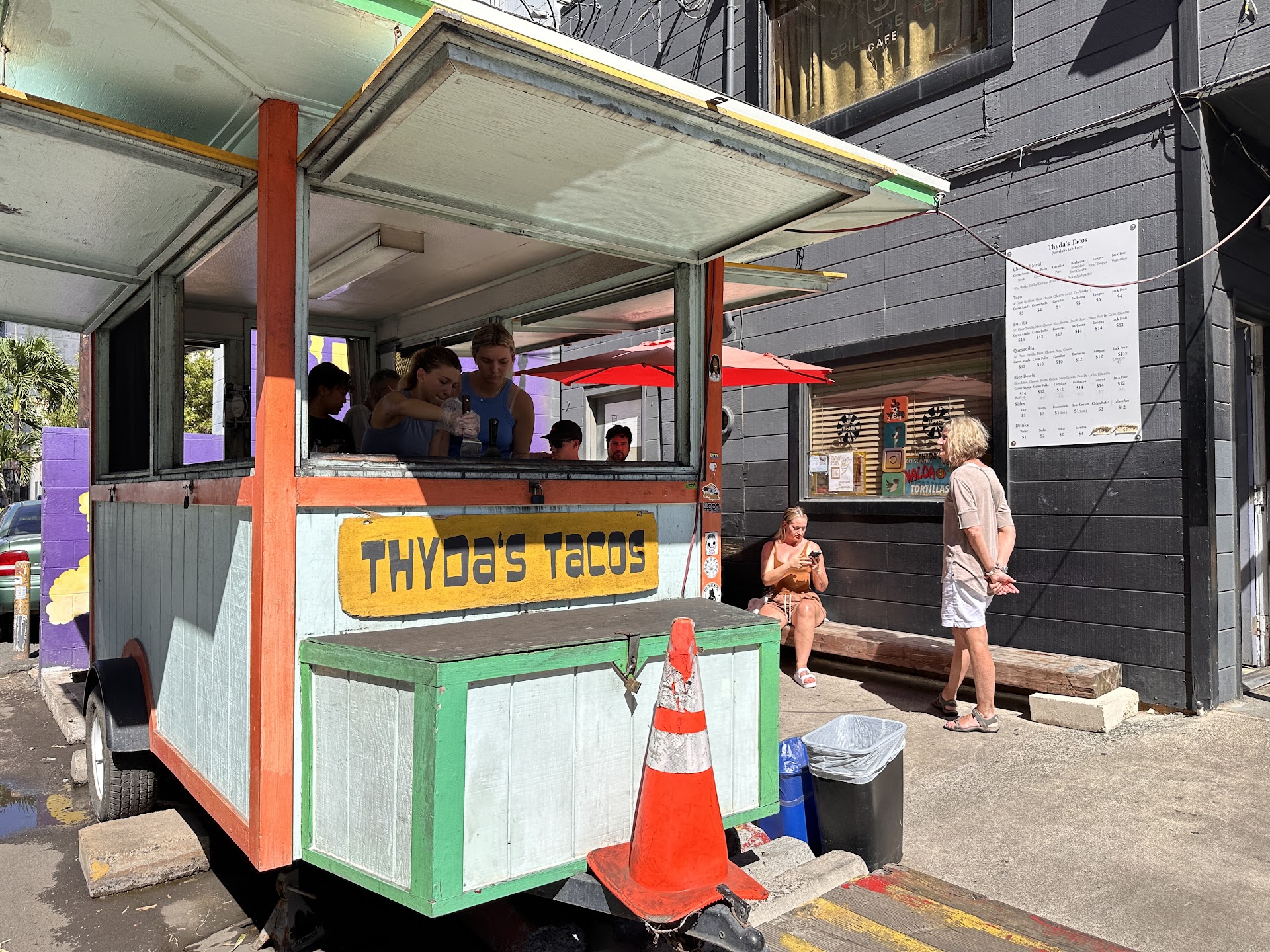 This place does a brisk business, so you'll want to scope out the large menu on the wall of the building before going up to the stand and ordering. Your choices are Tacos, Burritos, Quesadillas and Rice Bowls with Carne Asada, Carne Pollo, Carnitas, Barbacoa, Lengua and Jack Fruit as your protein.