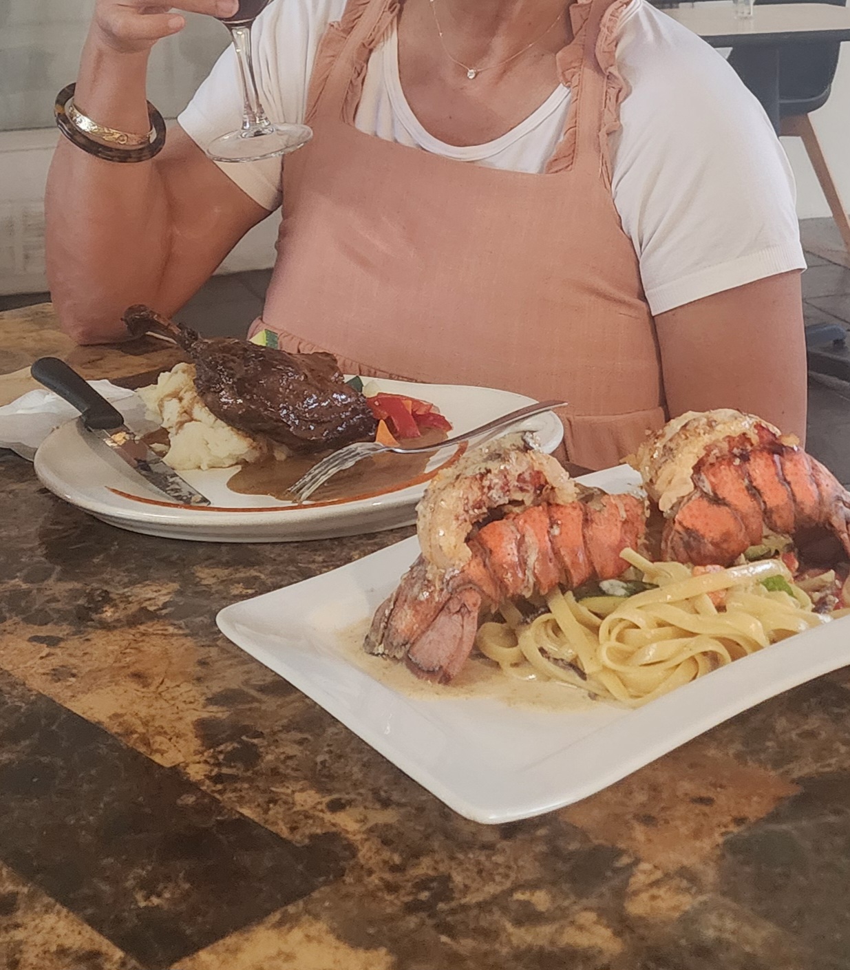 The dinning area is out in the hallway of a home decor design center or sort of a mall. It is very open, but the acoustics are horrible, so don't expect a quite dinning experience. Also, their seating is very close to other tables and it was a bit annoying having two tables on each side of us with loud talkers how laughed and giggled all throughout their meals.