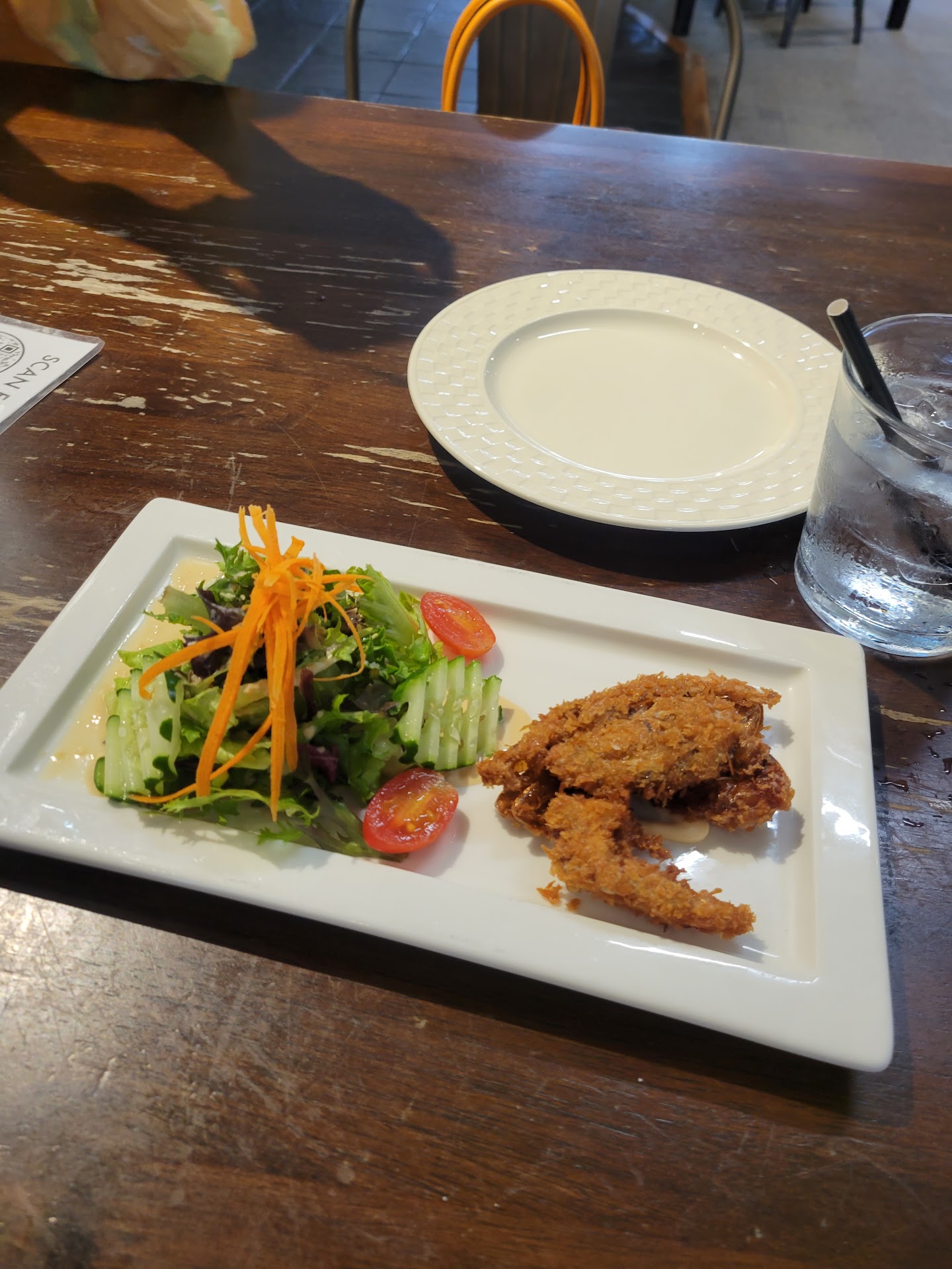 Read moreThis place is really cute! The vibe is really nice and everything is pyramid shaped it's really cute. I got the soft shell crab for the appetizer and it was really good. The crab was cooked perfectly and super crispy and the side salad complimented the crab really well. As for the entrees, I was a little disappointed. The portions were ok. My friends and I weren't too hungry so the portion was good for how full we were when we got there, but if we came to the restaurant really hungry, I would say that it would not have been enough food to feel full. We got the yellow curry which was alright. The flavor was good, but a tad bit too salty and there wasn't enough rice. My friend got the rosemary cream pasta and it was just lacking. I felt like it didn't taste like much, and it was bland and lacking any bold flavor. The desserts were really good tho. Super cute looking desserts. The tiramisu wasn't the best, but it wasn't bad. Overall the experience was really good, but the food is...