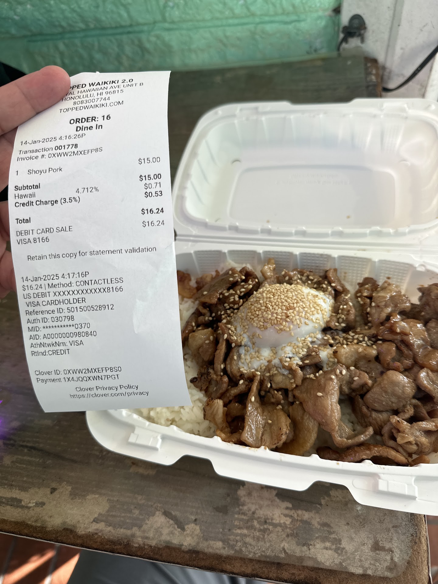 Discovering Topped Waikiki was like stumbling upon a flavor fiesta! While authenticity might be up for debate, the taste is a party in your mouth. Picture this: I embarked on a culinary journey with the kalbi steak, eggs over rice – a feast where the steak was the headliner, plentiful and as tender as a heartfelt melody.