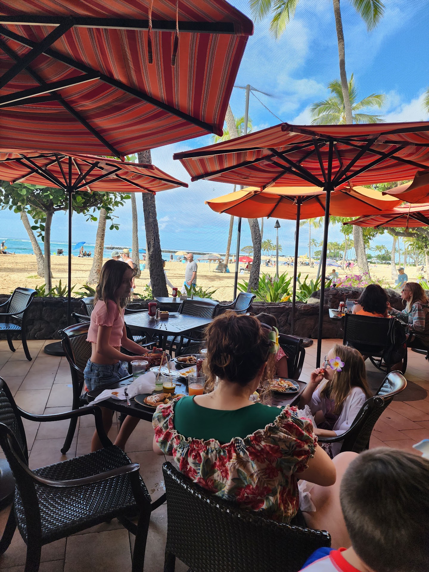 Read moreThis was our first restraunt we sat down and ate at Hawaii. We went for breakfast around 8, and we had a group of 13. They sat us quickly. Our waiter had great customer service skills !! Brian was our waiter that morning. Our food was fantastic !! Great potato medley. Everyone enjoyed breakfast that morning. The drinks were great!!! This was a pleasant surprise since we have learned over the years that resort restraunts/hotel reatraunts aren't always the best quality but more for convenience. We did pick here for breakfast because of its convenience to the Hilton Hawaiian Villiage. We were pleasantly surprised !! That's was our first visit. Two members of our group went another 2 times without the group and had great experiences both times. We had another free morning, and our breakfast spot we originally picked for the day was closed . So we choose to go to tropics again. We knew we loved the breakfast, and it was coconvent. We unfortunately didn't make breakfast as they stopped serving it around 10:30 . But we got to try lunch. This visit was equal, if not better. We really lunch ked out in the waiter department . I was so shocked that we had such great services yet again. Our waiter Sohe** ( not sure of spelling) was so considerate. He anticipated needs quickly , he was kind, and you could just feel that he was a good human. One of the kids spilled her coke, and we was cleaning it up . He said no, no, sit and eat, I will clean . He insisted. He brought a new drink quickly . Lunch was burgers and fries all around, and everyone seemed pleased. I wouldn't say it held the same taste as breakfast, but definitely good. We ended up visiting one last time as a group. We made it for breakfast, which was the goal. We had to have those potatoes again. I personally wanted that omelet!!! Our food was great and the service was good once again. I don't know if this place is just filled with good servers or we just got lucky, but it was refreshing to have good service consistently. Our waiters name on our 3rd visit was Glen !! Also of course the beachfront set for a beautiful view while eating. Thank you, Tropics for making our food choices a little easier while...