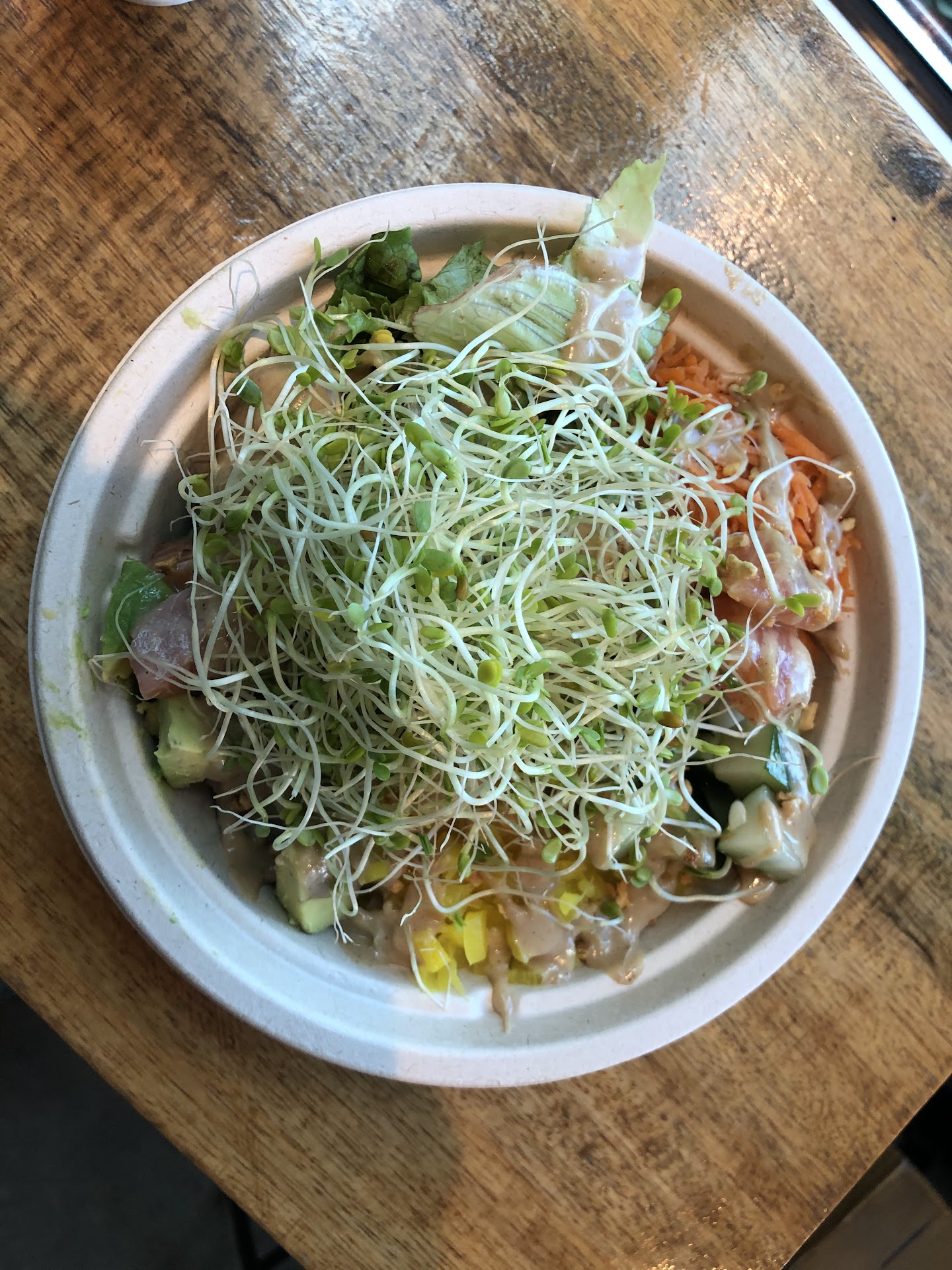 Update 11/5/24. The pain from my gluten bombing lasted my entire trip and past getting home. Honestly, other than the shopping center called Salt, being a tourist and walking around this area was sketchy as hell. Don't walk by the park after dark. Even walking in the daylight raised my hackles but my point is don't bother with this location of Up Roll bc it does not compare at all to the Kailua location. In Kailua, you will not have the involuntary up-sell that makes you sick even though you tell the staff that you will definitely get sick. I think most people can agree that getting up-sold is just annoying regardless. My bowl plus a (less than 5 ppm gluten)beer was well past $20 which would be fine but the whole experience was...
