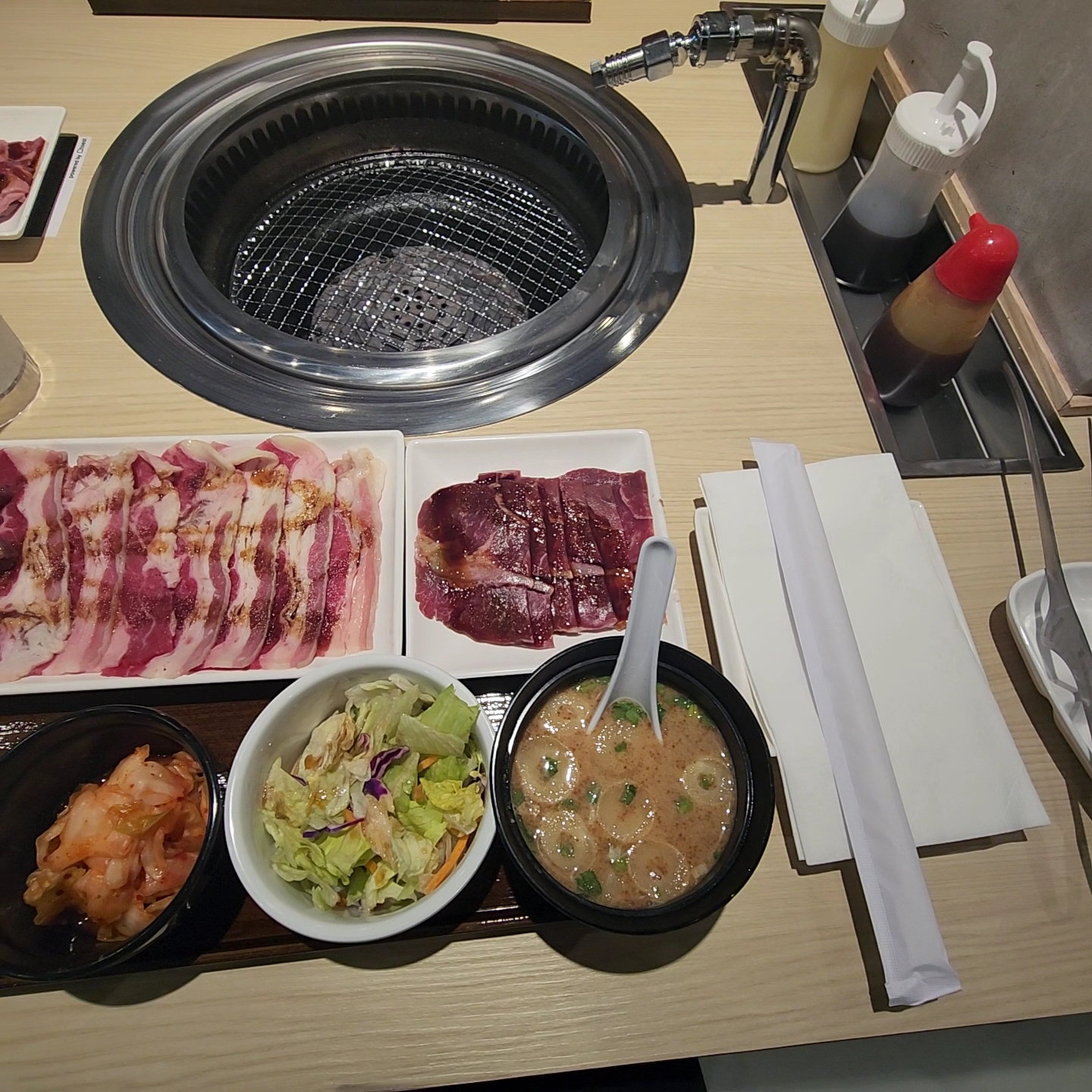 4/14/25 UPDATE (Added 1 star to the food) Went back today before the opening special ends tomorrow. Everything was roughly the same but with the added additions of a fine salt and pepper shaker which was VERY appreciated. Definitely enjoyed the meats Abit more with some of that seasoning. Also the grill seemed much better this time around, although I did order an extra amount of nice fatty short rib.