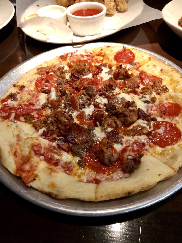 The Carnivore Pizza 8 slices. As its name implies, it's loaded with good 'ol salty meat (pepperoni, beef, sausage and bacon). They did a good job on this chewy, thin crust version with a savory marinara base. Easily my favorite dish of the night.