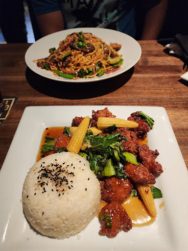 Had such a great experience here! This place is often recommended so we decided to try it for our anniversary. They don't do reservations and you have to be present for check in. We went around 5:30pm on a Monday and waited about 10-15 minutes. Their notification system is kinda crap because we received both the notification that our table was ready and that we took too long to show up so they gave away our table, at the same time. We were 5 ft from the counter. But when we showed the ladies at the counter, we still got a table almost right away after that. Food is good, my husband ordered a spicy garlic pasta (I think) I wasn't a huge fan of that but he liked it. I had the orange chicken and it was good. I loved the baby corn and baby bok choy. Serving sizes are pretty big. My husband actually made a joke about how big my rice serving was. It was a good cup and a half ish 🤣 If you like poké, I highly recommend the poké nachos. It's one of the main reasons I chose to go here and was not disappointed! 10/10. Overall though, I'd say food was 4/5 ⭐️ I've had better, but still good and FRESH. It reminds me of a fancier version of Applebee's (not an insult), same types of food. I liked the vibe better here. The family seated next to us was super annoying and kept asking the waitress ridiculous questions. But I know that can happen anywhere and not to reflect the business. It was nice and breezy, not cold, not hot, but the fans were drying my eyes out.