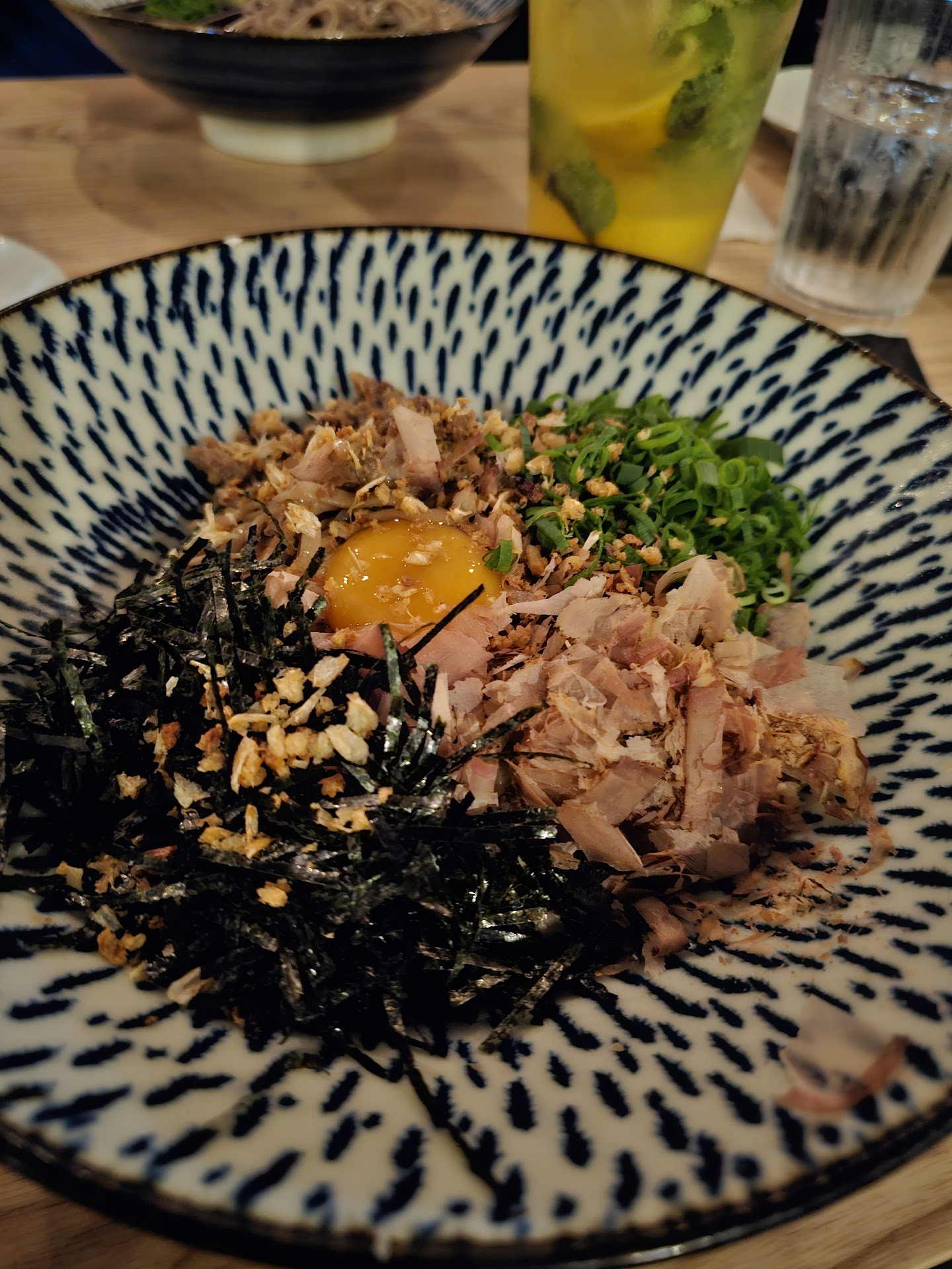 We came to this craving some good Soba, and figured we would add some nigiri cause why not? Atmosphere seemed cool, though lots of tables were empty. Figured it's just a weird Tuesday night but who knows?