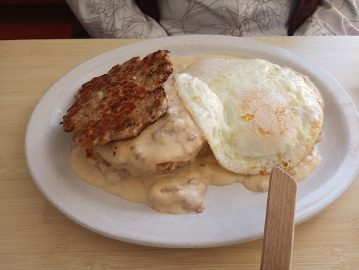 Read moreMy husband and I stopped by this charming town early on a Saturday morning and decided to eat breakfast. We were greeted by friendly staff right away. It was a beautiful day, we sat outside. My husband ordered a Bloody Mary which was made with their house made mix. It was very fresh and clean tasting. I had coffee, very good on the chilly morning, and the refills kept coming which I appreciated. I had the biscuit with egg and sausage with sausage gravy. The biscuit was huge and oh so delicious. The sausage gravy was delicious, not overly salty. We both loved the food and the service was top notch. Although it is comfort food, it was very fresh and we left feeling full and very happy! We look forward to...