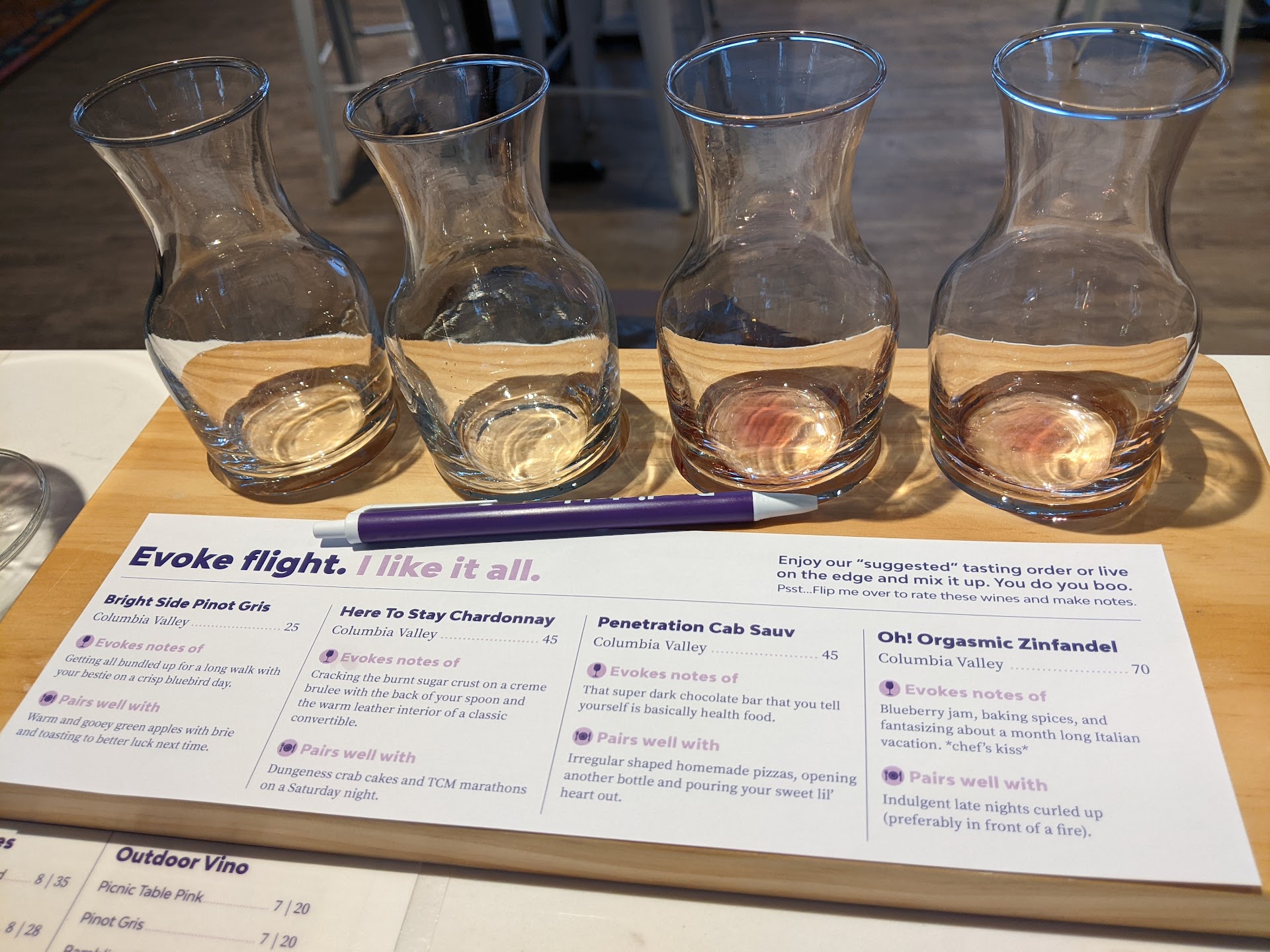 Read moreMy son Michael and I came here In June and have been here three times since. We usually have Raye as our server. She is so much fun and knowledgeable and has such a spunk to her personality, she is so personable and friendly, we just love her. The vibe here in Hood River is so fun and funky on the inside and has a beautiful ambience on the outside with cushiony chairs, a little waterfall flowing noise in the background. Itâs always a good time coming here or in the summertime. Looking forward to the winter ambience on the next trip. I say have fun, take pictures and make fantastic memories with your friends and love ones. Cheers...