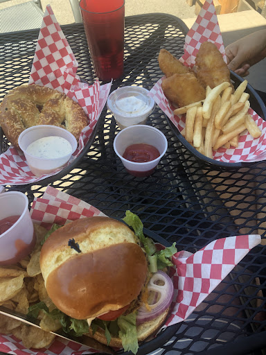 We arrived a few minutes after they opened. I asked if they were serving food and the lady responded by saying "The fryers not turned on but it doesnt take long to warm up. So the answer is yes". Kinda rude but whatever. We were hungry and the other restaurants were packed with long waits. I ordered a cheeseburger with no onions and no tomatoes (it comes with kettle chips). My wife ordered the chicken salad sandwich(comes with chips). We both ordered a lemonade. Our total was $38! Our food came. We went outside to eat in the dirty outdoor patio. It was obvious no one has cleaned out here in awhile. My burger had 2 slices of onion and 2 slices of tomato and spinach for toppings besides the cheese. The bun was good, the burger was not. It was dry and hard not to mention it didn't come the way I ordered it. There was just a handful of chips that came with it. Wife said her chicken salad sandwich tasted just ok and she thought maybe it was store bought from a deli and not freshly made. I used the restroom and couldn't help but notice the over flowing garbage can and litter on the floor and just general dirtiness...It was obvious no one had cleaned the restroom recently. One thing that really grossed me out was this stubby little ketchup bottle I was given to use. The lid had dried stuff on it and the bottle was dirty. The paper label on the bottle was pretty worn from use but it was completely full. This means they are refilling the stubby bottles which I guess is not an issue??? But when is the last time they washed them bottles?? I will not go back. Oh, the service was overall friendly after the initial meeting and our food...