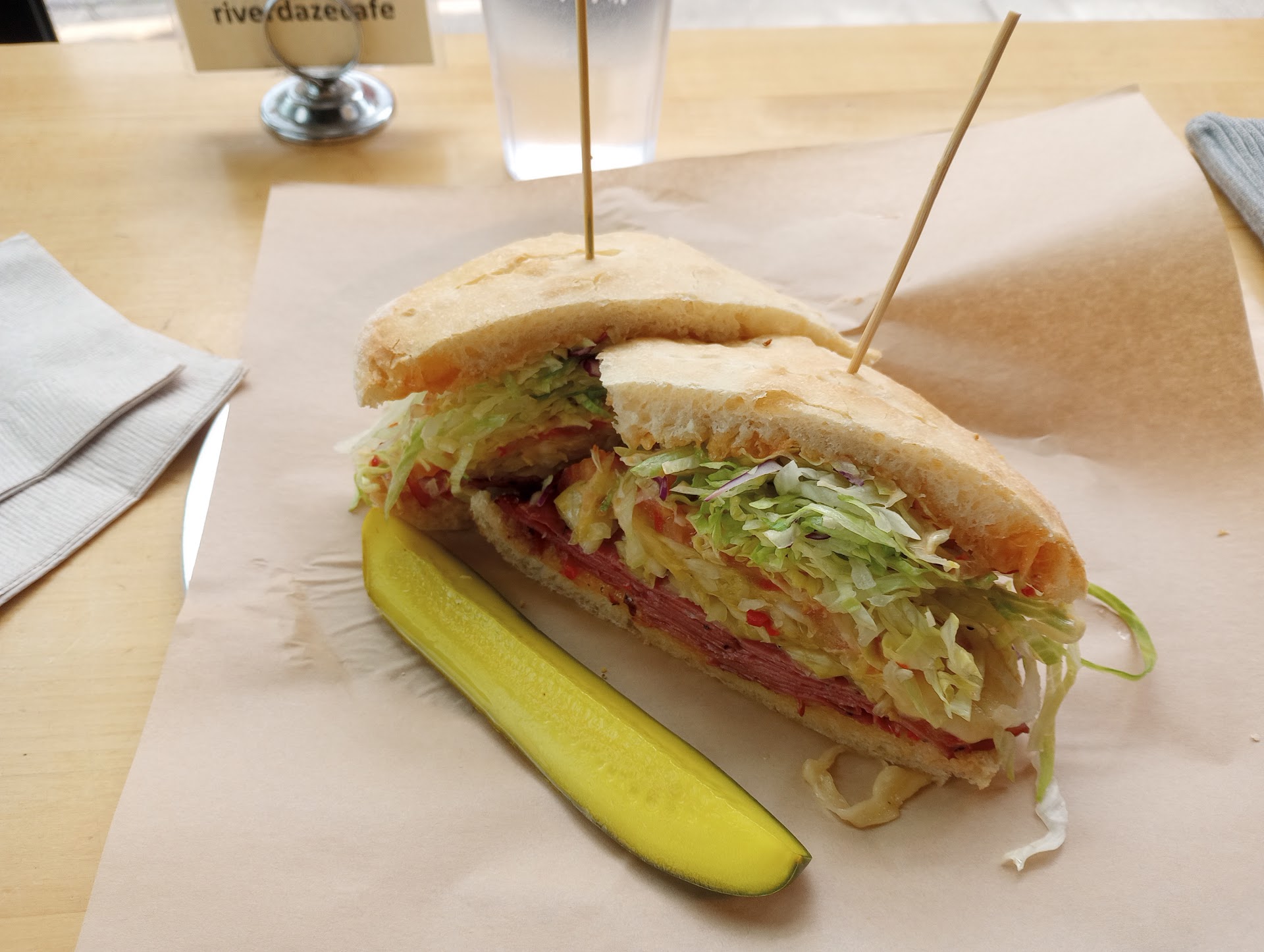 Read moreNot impressed. First and only time here so I've only had one thing from the menu. Took longer than I expected to get our food but I'm pretty forgiving about that. Maybe 20+ minutes. The pastrami sandwich was underwhelming in every way. While the meat itself was tasty there was not much of it. The bread was not toasted and was actually soggy on the bottom which I did not expect. Could have had more sauce/mayo. As a lover of sandwiches, one thing I always dislike is when the middle of the sandwich is super fat and the outsides have no filling resulting in a ball shape that is just unpleasant to eat and I always have to open it up and redistribute the ingredients. It takes minimal effort to assemble a sandwich. The slaw was not great and super watery. The tomato was also lackluster. Even the pickle was rubbery and too sweet. Almost $14 for a mediocre sandwich and pickle. Service was a bit snarky and I could tell they didn't like that I tipped only 10% which I usually think is fine for a place with no table service. Look, they don't need my business, there are lots of yuppies who are clearly willing to pay a premium to sit on their computers and enjoy uninspired fare. I won't be back but maybe I should have tried...