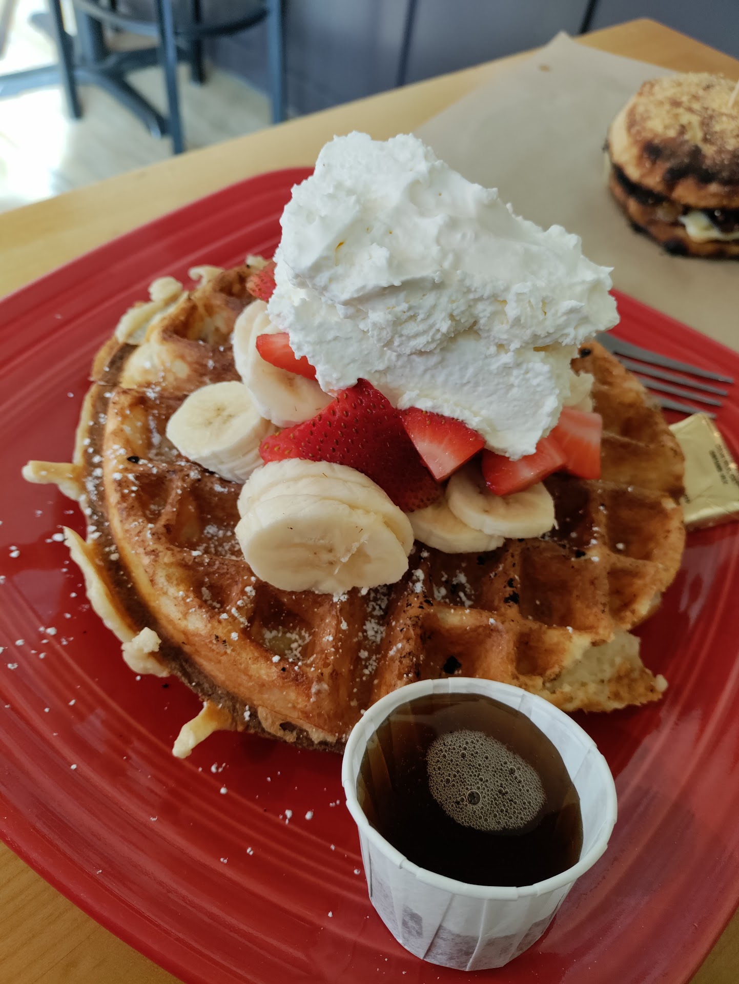 Read moreOf the many excellent breakfast and coffee options in Hood River, this is one of our favorite casual breakfast spots in Hood River. A convenient walk from the waterfront. Big garage door style windows open up on sunny mornings. Order at counter. Find a table. Pour your own black coffee. Buss your table when you're finished. Can get a bit busy, so be prepared to wait a bit of it's a busy morning, but the food is worth it! Scrumptious big, fat homemade English muffins make for great breakfast sandwiches. The waffles are amazing, as is the yogurt and homemade granola. The iced coffee is some of the better cold brew I've tasted. Best part; starting your morning here will cost far less some of the other quality breakfast spots in town. Open for lunch as well, but we're usually on the water by then, so cannot speak to lunch (have seen lunch dishes, and they look great). Plenty of local artists work featured on the walls (for purchase if interested) give this cafe a vibrant, interesting and colorful flair. Easy walk down to the waterfront from here, and very close to train depot if you're taking a scenic train ride up to Moun Hood. Definitely worth a stop. Might just become one of your...