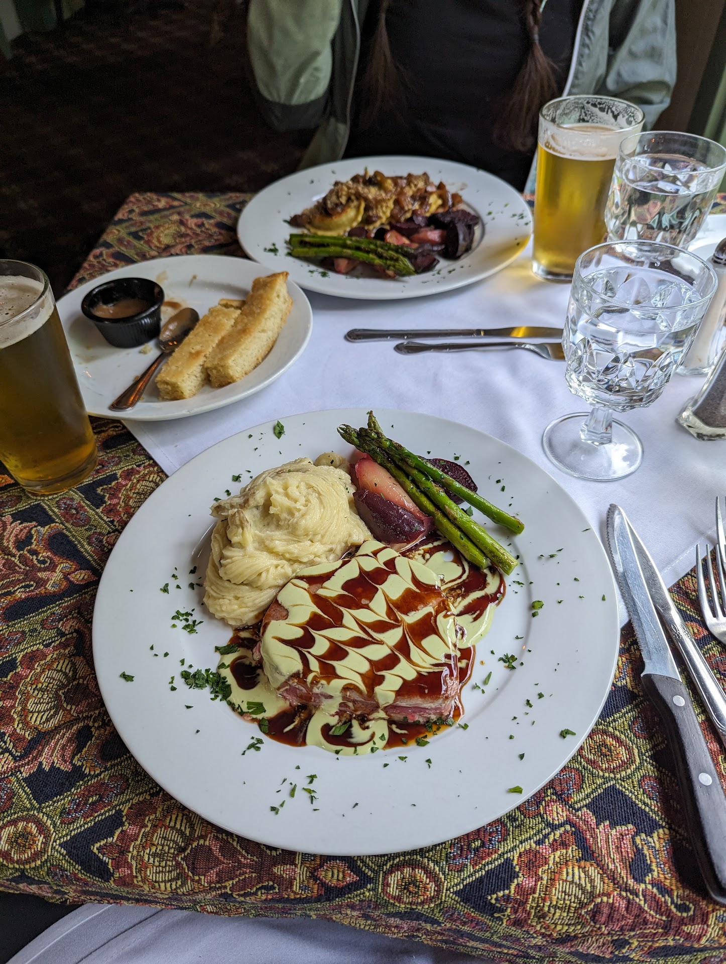 Read moreExtremely pretentious menu. Avoid the mushroom appetizer! 4 sticks of horrificly greasy bread in a bowl, lying in a puddle of maybe 4 sliced mushrooms swimming in a cheap sherry wine, garlic and cream. Was so acidic I vomited when I got home. The only thing that was served "relatively hot" was the soup. Which was mostly butter with tiny shreds of vegetables..my wife's meal and mine were barely room temperature when they arrived. Luke warm. 2 steaks, badly seasoned mashed potatoes, undercooked shrimp..a $9.00 caesar salad??? Service was excellent, waitress, excellent. Kitchen and food?? Absolutely disgusting! Entire meal? $124.00 + tip. This restaurant ,. I'm sorry..the wait staff is serving food that,...I'm fairly certain none of them would touch with a 10 foot pole. Sauces are gross... Steaks are of marginal quality and the cuts of meat are odd,..like scraps the butcher's couldn't sell to anyone else. We were checked on so many times by our server it was almost as if they were fearful of complaints... I don't blame them one bit. Never returning to this restaurant. Taco bell knows more about food than this kitchen. Scary, right? Prove me wrong! Stonehenge,... better fix that menu guys! ...