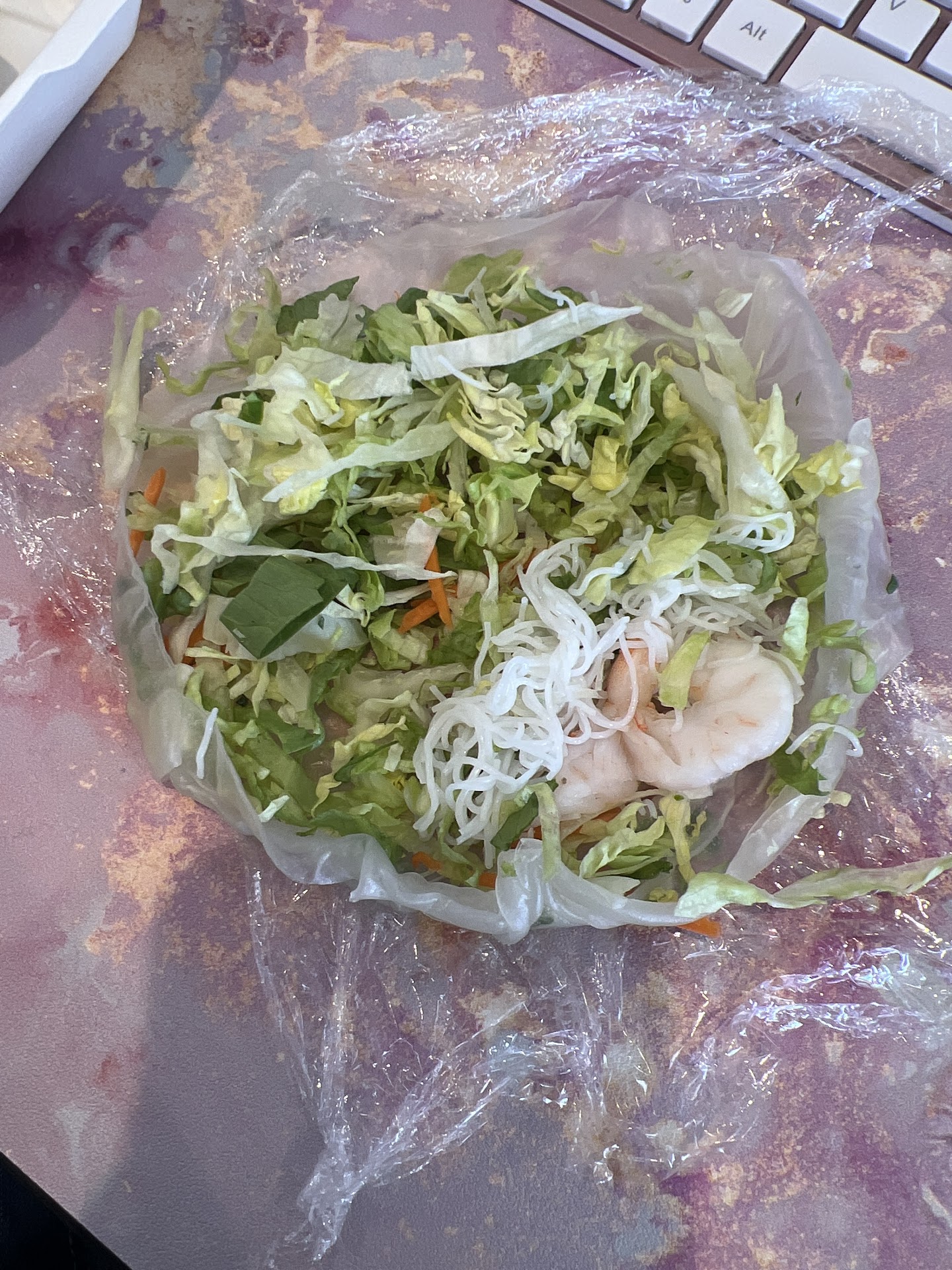 My husband ordered KengDeng and felt that there was also very little effort in the construction of the meal too..like the ingredients were just added together in one container. He ordered spice at 4 which is all that saved his meal. His order of pork summer rolls was bland chicken and unseasoned veggies.