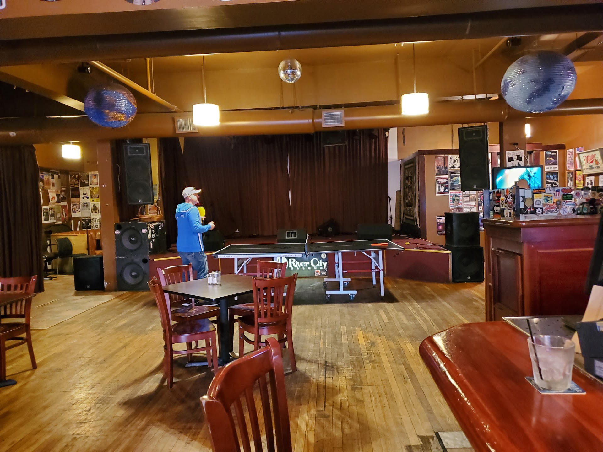 The space itself is welcoming, with plenty of seating options: plenty of tables, bar stools lining the walls, and even some fun extras like a pool table, poker table, and a small stage that promises live music in the evenings. It has that lively saloon-meets-modern-bar vibe that works whether you’re there for a meal or just drinks.