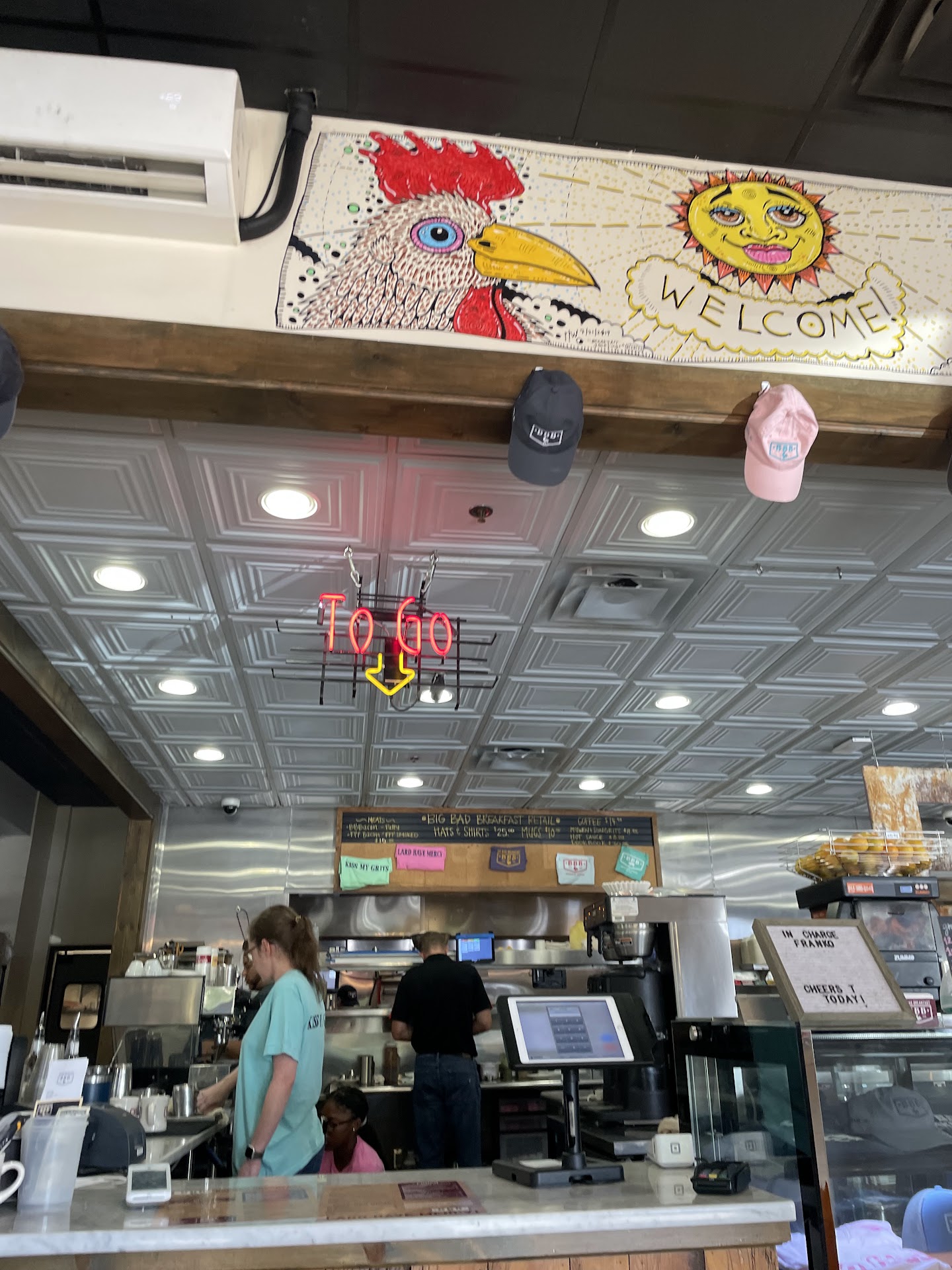 Read moreWe came 10 min till 10am, there was a wait of approximately 25 min, its understood give or take maybe more or less. Our wait time turned into 45 min, I asked the hostess about our wait time, and she said that there would be 3 more ahead us. This wait then turned into a hour and a half wait, so I went back again to ask about us being seated and she had already moved onto another guest list and a line had been drawn through my name on the old list. We were seated right outside the front door, so we heard EVERY single name called, so it was no way we missed it. This kind of ruined my first experience at this restaurant as it has been given rave reviews from people that I know and the written reviews. Several people that came in after us were seated before us including someone that the hostess apparently knew because she hugged this lady, and she walked them inside and they were seated before us. This is bad business and very unprofessional. But on to the food, i ordered the fried chicken, which was really good, seasoned very well, the grits which are a nogo for me, taste more like polenta, if youre from the south you know there is a difference, the consistency was not right, i am used to a creamy buttery flavor, they were gritty. I also ordered one pancake a la Carte, very good, and i also had fruit which i didnt eat because there was a short hair maybe an eyelash on it, which the waitress was very nice about substituting, it was no biggie it happens. Sweet tea was also very good. I would come back, maybe at a time when it is...