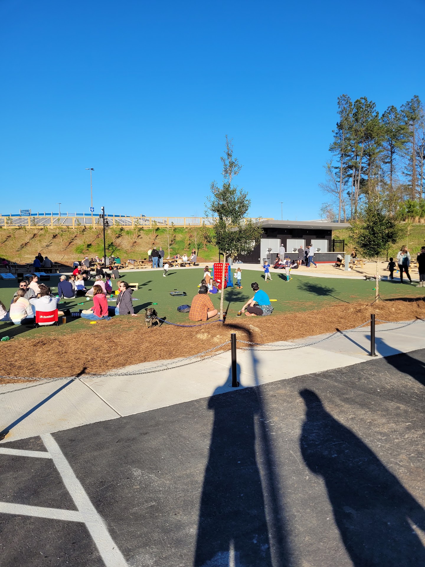 Ā Ā Ā Read moreSince it was first announced in October 2020 I have been waiting patiently for this place to open. Thanks to an untapped app friend stating that she had been here on Saturday 3/12 I realized that it had opened right under my nose. Of course I had to check it out for myself on Sunday 3/13. The parking lot is small but we were able to secure a parking spot first try. The overflow parking is at the Hoover Met and the wooden stairs will lead you down to the brewery. In the brewery parking lot there are spots up front just for golf carts. There is an open area for the kids to run around but be aware while playing corn hole that they will run right in front of you or across the corn hole board and leap off of it. Yes the parents are sitting right there watching! There are food trucks available as the brewery does not have a kitchen. The soft drinks are limited to bottles of Coke, Sprite, and one more that I don't recall but you can can bring your own soft drinks. The brewery is dog friendly and are allowed inside as long as they are well behaved. There is plenty of seating inside and limited tables outside facing Stadium trace. There are picnic tables out front which provides more seating. There are 13 taps available with 4 more coming soon. While it was crowded you didn't have to wait long to taste any of the available beers or receive a glass of your choice from any one of the available draft selections. This looks like it will be a popular choice among beer drinkers and one of my favorites. I will definitely be back with my two long hair dachshunds to enjoy the outside with some cold...