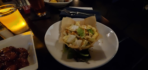 The atmosphere is fine; The sushi bar has a really cool video wall that rotates through various Asian locales. Otherwise, pretty standard dining. Given the reviews provided to us, I would have expected this to be somewhere that came along with an (unspoken) dress code of some kind, but nope... not at all. Our server (hate I don't recall her name) was the best part of this dining experience. She was patient, offered great descriptions and suggestions and even advised against getting the stuffed shrimp to go as it didn't heat well, which we very much appreciated.