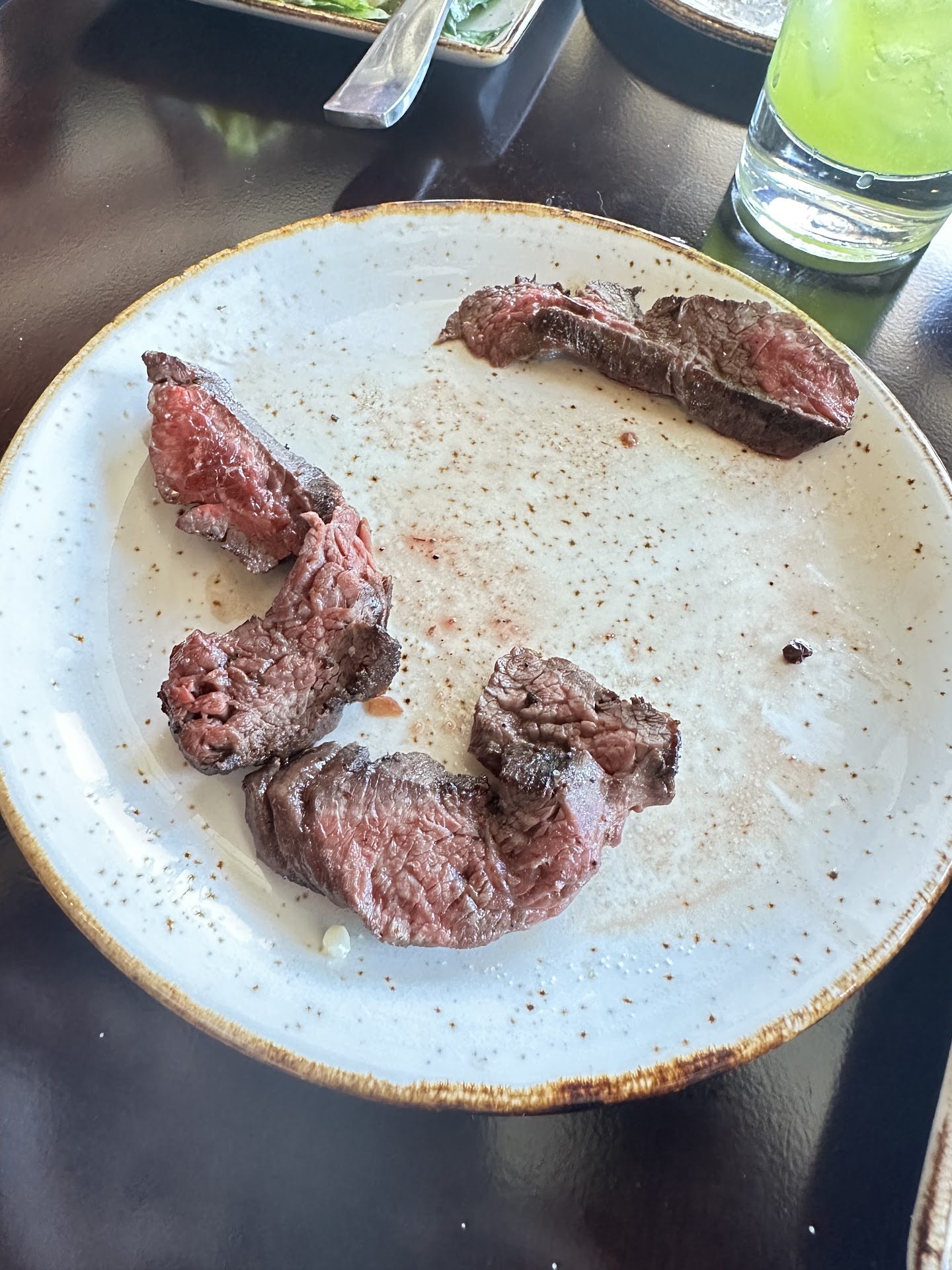 Where do I start. Ordered with 2 different serves. One who couldn’t remember what we ordered. The other tried her hardest to rectify the ongoing issues. Took 25 minutes just to receive the drinks that were ordered as soon as we sat down. Then the salad received with kale that wasn’t broken down or massaged so that it wasn’t chewy. Changed that out for regular lettuce which they brought out naked without the topics. I assumed they wanted me to pick them off the kale and transfer to the romaine. But the steak, which came out cold was the biggest issue. It was cooked medium as I requested but had no warmth. So they brought another one out which was hot in temperature but cooked past well done. Manager comes over and her words after asking me what was wrong “well what do you want”. I started I wanted warm medium steak. She argues that it will be cold in the middle because it’s medium. Never have I had, cold medium steak. So in return, she brought me a reheat of what I had already sent back. Couldn’t eat it of course because now it’s chewy because of the reheat. We were given a $5 discount but with an attitude....
