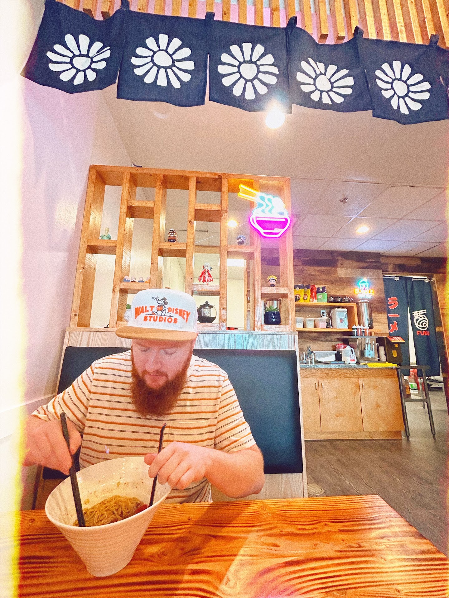 This place is definitely the best ramen spot we’ve been in AL so far. Then why is my review 3 stars? First of all, my review is 3 stars that’s ever so close to being 4 stars. More like 7 out of 10. Second of all, I’m sorry but it’ll take me a knockout ramen to give anyone a 5 star review on any ramen restaurants including ones I visited in Tokyo and elsewhere else in Japan. I make my own ramen from scratch I’m not saying that my ramen is the best but I’ve been making it for a while and I know little bit about ramen. This place has pretty decent ramen - I had Miso Ramen and our son had spicy Miso Ramen. Noodles had nice body (Koshi) to them and they were cooked pretty nicely (softer side of Al Dente) but had Kansui (soda) smell to them. Maybe because they were originally frozen and didn’t cook evenly? Soup had pretty good Miso flavor but lacked in strong stock flavors. Couldn’t tell if it was Torigara (chicken stock) or Tonkotsu (pork bone flavor). Or maybe, Niboshi (dried sardines). I just wish it had little more savory flavors (Umami). Aji tamago (egg) was little over cooked for my taste and didn’t have much of flavor. But Chashu (pork belly) was pretty good. We also had Gyoza which was pretty decent. I think if they can improve on those things that I mentioned, they can produce really good ramen. This place definitely has potential and I’ll be back again since it’s very close...
