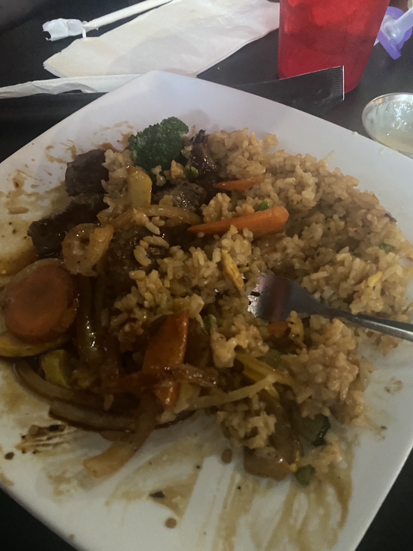 Usually we love this location. Last night changed our minds. My husband and I took our 2 kids for dinner and the experience was disappointing, to say the least. Our appetizer came out quickly and was great. Sushi took a good bit longer but no big deal we sat and talked. However, one of the kids ordered chicken fried rice instead of sushi. All the sushi came out and was mostly eaten before we could get our waitresses attention to let her know we were still missing someone. She never came to check on us. She would walk past us too quickly for us to catch her. I tried for most of the meal to get her attention but it felt like she was intentionally avoiding looking our way. I even waved at her once and she immediately looked away. My daughter had to actually go to the register to ask for a set of chopsticks because we couldn’t seem to get anyone’s attention. When we finally got her to come to us to tell her about the missing dish, everyone else was just about done eating and the only response we got was that the ticket must have gotten bumped. It still took about 15-20 more minutes before his rice came out and was brought with the bill. We were not offered refills despite having empty glasses for an extended period of time. For the first time EVER, I asked for a manager at the register. I told her about the issue and was essentially told that they had too many hibachi orders and too small a grill to keep up. She did take the rice off our bill. That all was bad enough but then my daughter and I were horribly ill all night after that. We didn’t eat anything else after dinner and had not eat since our early lunch so we’re pretty sure it...