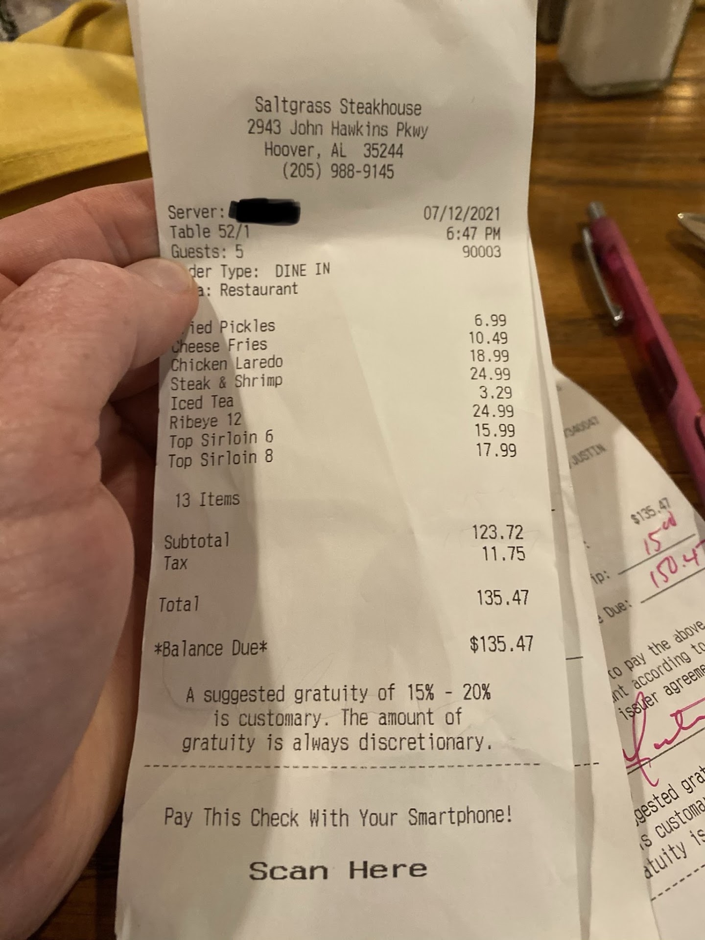 Read moreI took my 6 yr old grand daughter to Saltgrass 12/28/19. The wait for a table wasn't too long. The food was average and the service wasn't too bad either. My server was nice and he tried his best but.... he never brought our salad. The ribs were not fall off the bone tender. The chips for my spinach dip were a little too done for my taste. The server said they would comp those because he said they had not changed the grease the chips were friend in but they never did. Instead they came back and told me there was nothing wrong with the chips. They said the chips were dark because the chips were corn chips and not flour chips. I ordered steak fries and instead I was given diced potatoes and they too were dark as though they were cooked in "Old oil". The server was supposed to bring us to go cups and never did. I called back once I got home to speak to the manager (as they were very busy while I was there and I didn't want to cause anyone else to have the issues I had) I spoke to the manager and all she offered me was a free salad the next time I come in. I asked her if I get a side salad with my meal why would I want 2 salads... She then offered me a free salad if I should be coming through town and wanted to stop in and pick it up. Chances are great I will not be back to Saltgrass. I paid over $50 plus a tip for a meal for a 6 year old and myself and I received a comedy of errors and average food and all I was offered was a free side salad with my next meal (that comes with a...